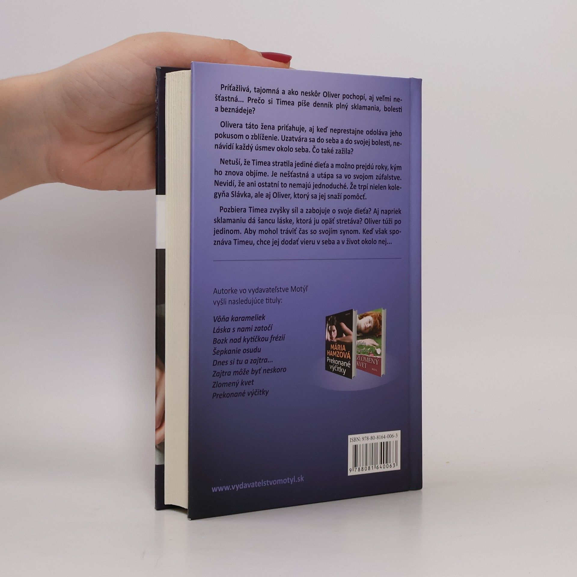 Príťažlivá, tajomná a ako neskôr Oliver pochopí, aj veľmi nešťastná... Prečo si Timea píše denník plný sklamania, bolesti a beznádeje? Olivera táto žena priťahuje, aj keď neprestajne odoláva jeho pokusom o zblíženie. Uzatvára sa do seba a do svojej bolesti, nenávidí každý úsmev okolo seba. Čo také zažila? Netuší, že Timea stratila jediné dieťa a možno prejdú roky, kým ho znova objíme. Je nešťastná a utápa sa vo svojom zúfalstve. Nevidí, že ani ostatní to nemajú jednoduché. Že trpí nielen kolegyňa Slávka, ale aj Oliver, ktorý sa jej snaží pomôcť. Pozbiera Timea zvyšky síl a zabojuje o svoje dieťa? Aj napriek sklamaniu dá šancu láske, ktorá ju opäť stretáva? Oliver túži po jedinom. Aby mohol tráviť čas so svojím synom. Keď však spoznáva Timeu, chce jej dodať vieru v seba a v život okolo nej...