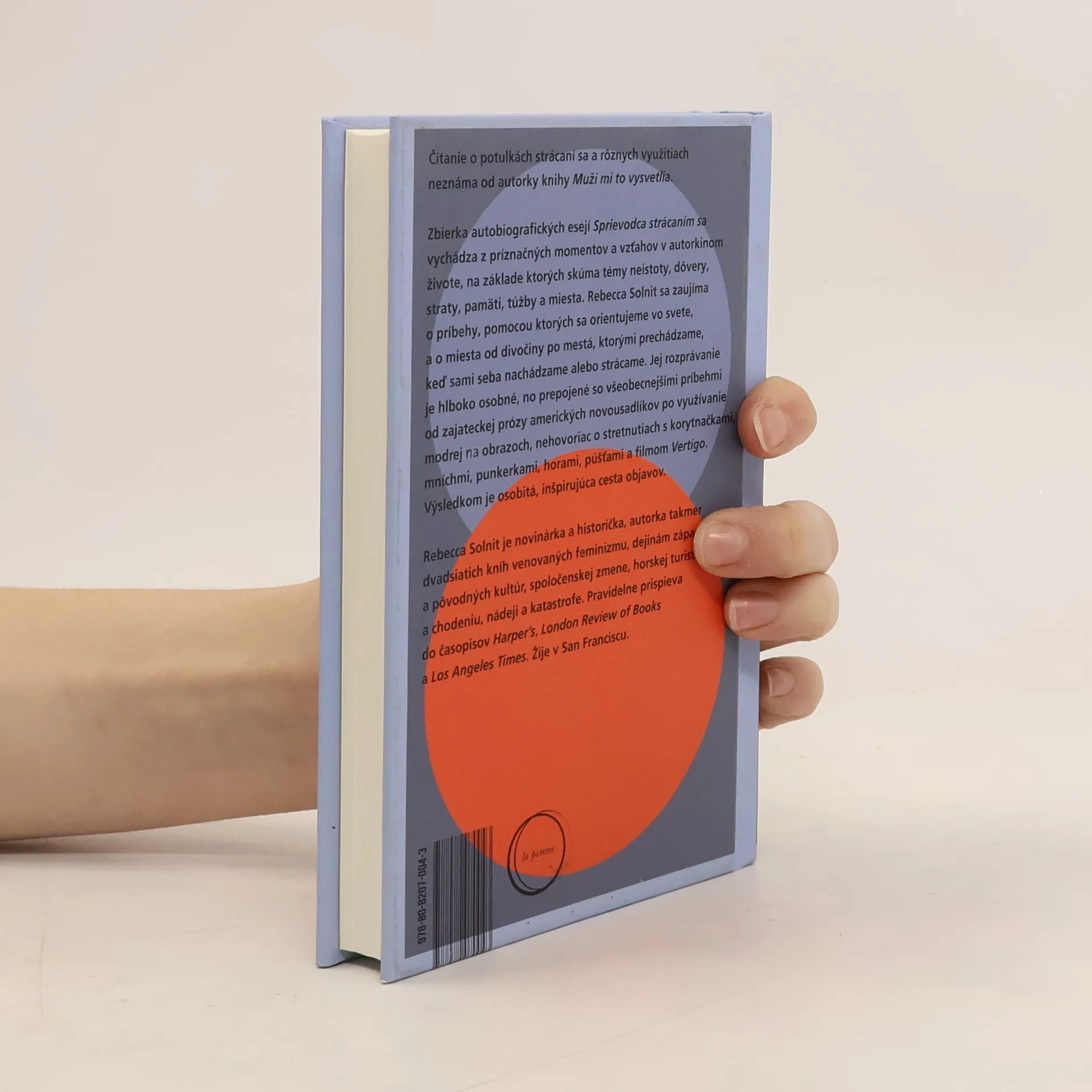 Čítanie o potulkách strácaní sa a rôznych využitiach neznáma od autorky knihy Muži mi to vysvetlia. Zbierka autobiografických esejí Sprievodca strácaním sa vychádza z príznačných momentov a vzťahov v autorkinom živote, na základe ktorých skúma témy neistoty, dôvery, straty, pamäti, túžby a miesta. Rebecca Solnit sa zaujíma o príbehy, pomocou ktorých sa orientujeme vo svete, a miesta od divočiny po mestá, ktorými prechádzame, keď sami seba nachádzame alebo strácame. Jej rozprávanie je hlboko osobné, no prepojené so všeobecnejšími príbehmi od zajateckej prózy amerických novousadlíkov po využívanie modrej na renesančných obrazoch, nehovoriac o stretnutiach s korytnačkami, mníchmi, punkerkami, horami, púšťami a filmom Vertigo. Výsledkom je osobitá, inšpirujúca cesta objavov.