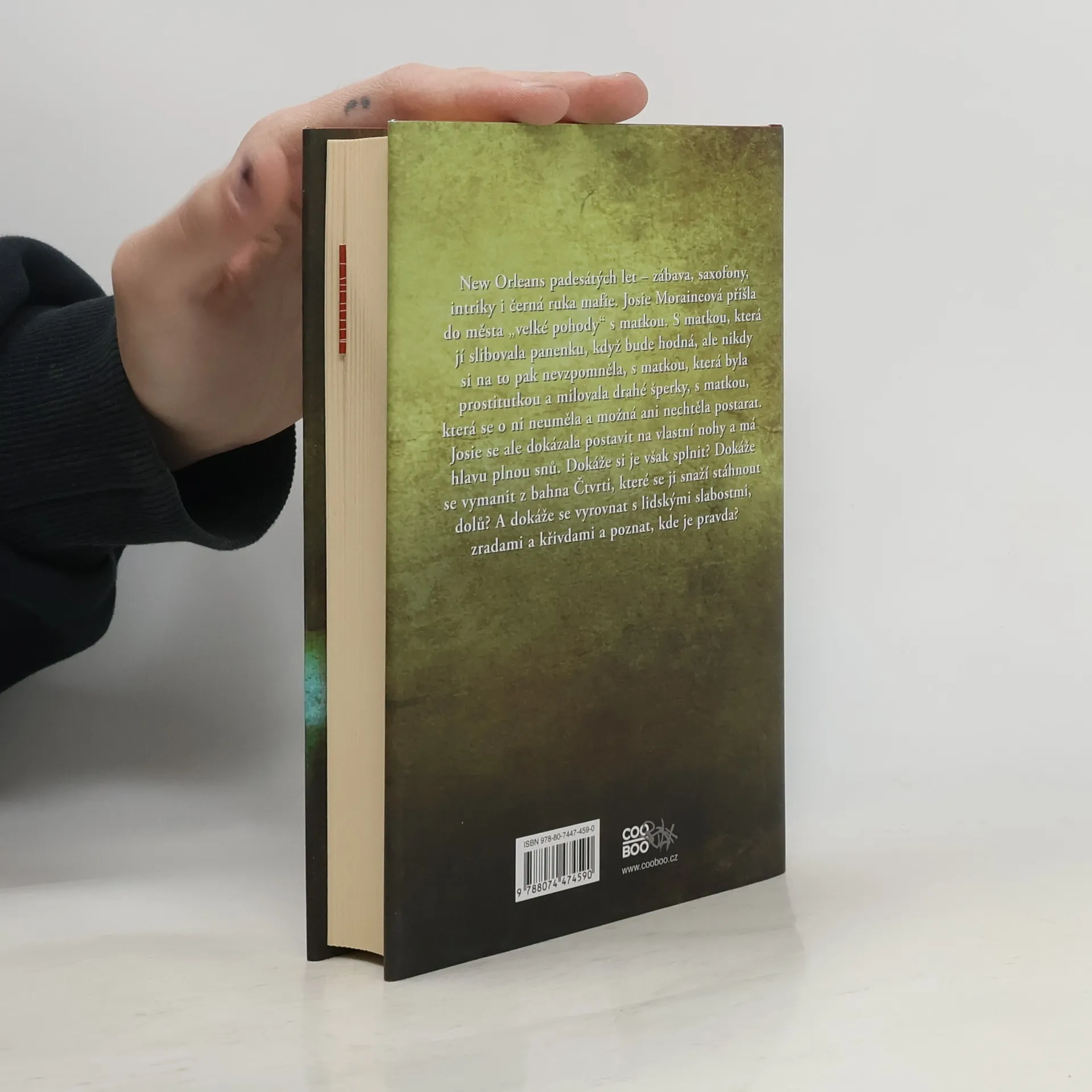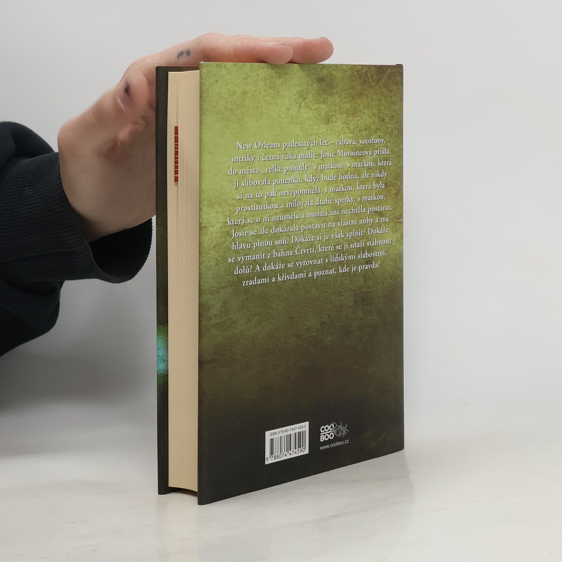 New Orleans padesátých let – zábava, saxofony, intriky i černá ruka mafie. Josie Moraineová přišla do města „velké pohody“ s matkou. S matkou, která jí slibovala panenku, když bude hodná, ale nikdy si na to pak nevzpomněla, s matkou, která byla prostitutkou a milovala drahé šperky, s matkou, která se o ni neuměla a možná ani nechtěla postarat. Josie se ale dokázala postavit na vlastní nohy a má hlavu plnou snů. Dokáže si je však splnit? Dokáže se vymanit z bahna Čtvrti, které se jí snaží stáhnout dolů? A dokáže se vyrovnat s lidskými slabostmi, zradami a křivdami a poznat, kde je pravda? Další kniha od autorky světově uznávaného románu V šedých tónech, která vás nenechá chladnými, s postavami, které vám budou ožívat před očima. Ruta Sepetysová svou druhou knihou dokázala spisovatelsky vyspět a právem se zařadila mezi významné autory současnosti.