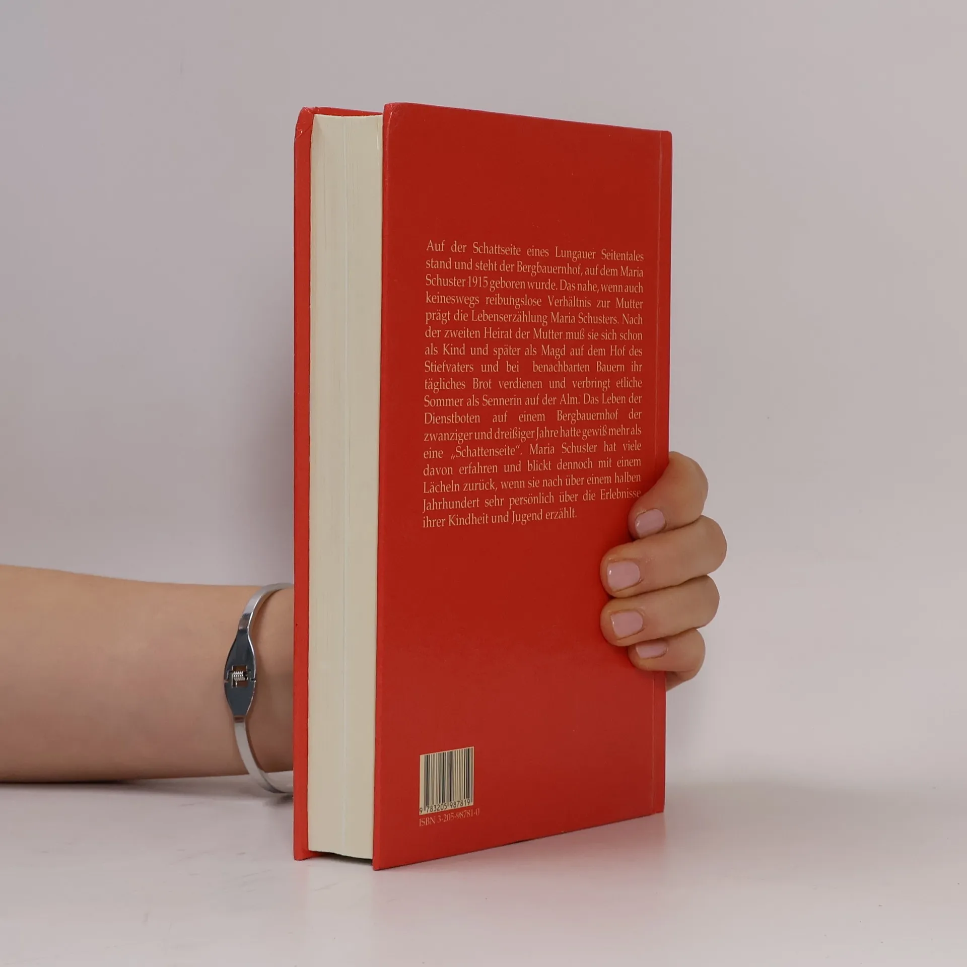 Auf der Schattseite eines Lungauer Seitentales stand und steht der Bergbauernhof, auf dem Maria Schuster 1915 geboren wurde. Nach der zweiten Heirat der Mutter muß sie sich schon als Kind und später als Magd auf dem Hof des Stiefvaters und bei benachbarten Bauern ihr tägliches Brot verdienen und verbringt etliche Sommer als Sennerin auf der Alm.