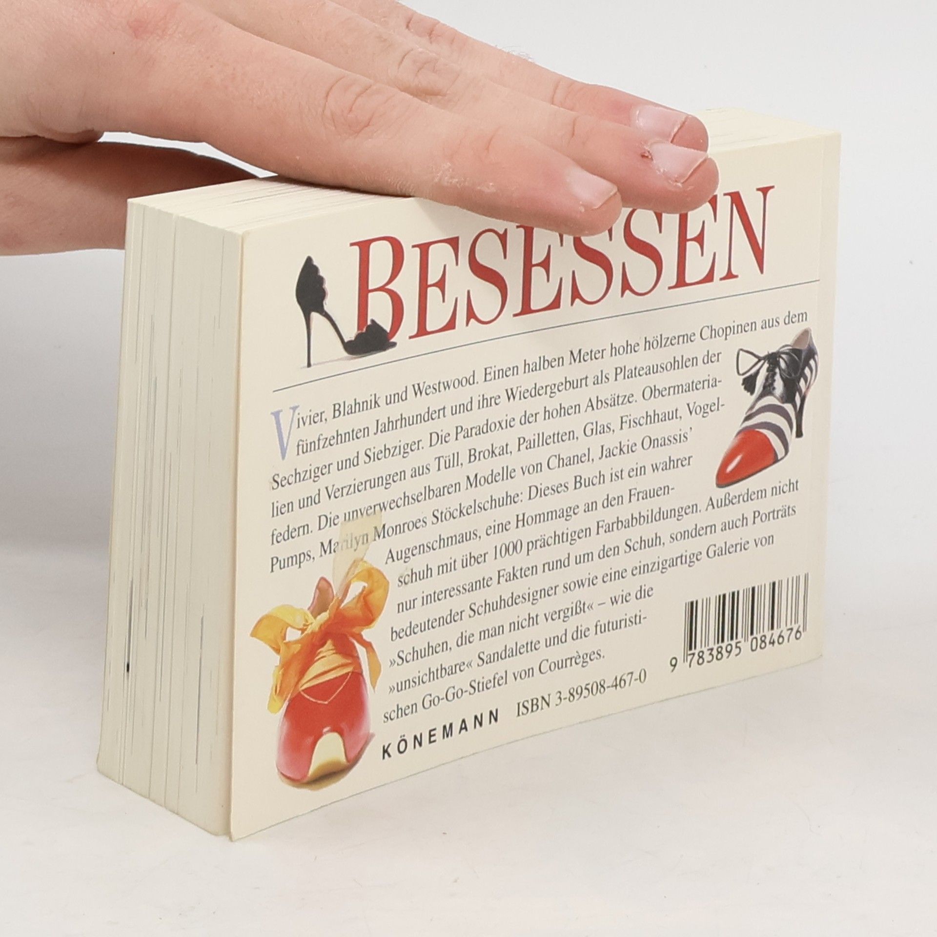 Besessen - Vivier, Blahnik und Westwood. Einen halben Meter hohe hölzerne Chopinen aus dem fünfzehnten Jahrhundert und ihre Wiedergeburt als Plateausohlen der Sechziger und Siebziger. Die Paradoxie der hohen Absätze. Obermaterialien und Verzierungen aus Tüll, Brokat, Pailletten, Glas, Fischhaut, Vogelfedern. Die unverwechselbaren Modelle von Chanel, Jackie Onassis' Pumps, Marilyn Monroes Stöckelschuhe: Dieses Buch ist ein wahrer Augenschmaus, eine Hommage an den Frauenschuh mit über 1000 prächtigen Farbabbildungen. Außerdem nicht nur interessante Fakten rund um den Schuh, sondern auch Porträts bedeutender Schuhdesigner sowie eine einzigartige Galerie von "Schuhen, die man nicht vergißt" - wie die "unsichtbare" Sandalette und die futuristischen Go-Go-Stiefel von Courrèges.