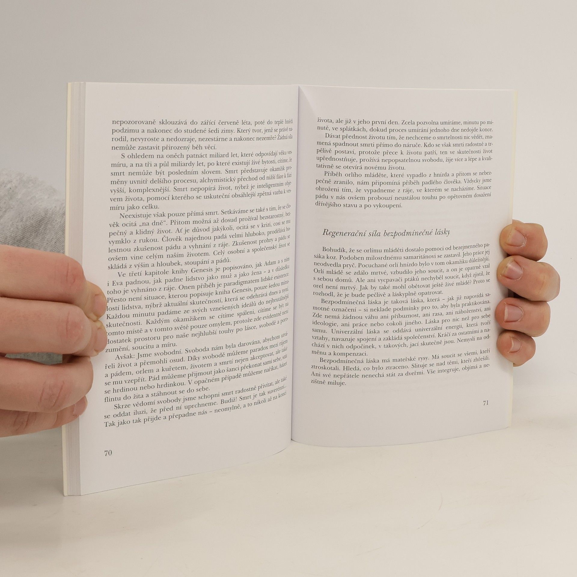 Orel a kuře jsou pro něj obrazem dvou základních dimenzí lidksé existence. Kuře představuje lidství všednodenní, prozaické, omezené, ale také zakořeněné... Orel je symbolem otevřenosti, poetiky, neomezených vizí a přání. Základní otázkou je, jak lze uvést ve svém vlastním životě tyto dimenze do rovhováhy. Ve snaze dát na tuto otázku odpověď čerpá autor z oblastí psychologie, antorpologie, ekologie, spirituality i mystiky. Kniha je určena čtenářům se zájmem o sebepoznání a duchovní růst.