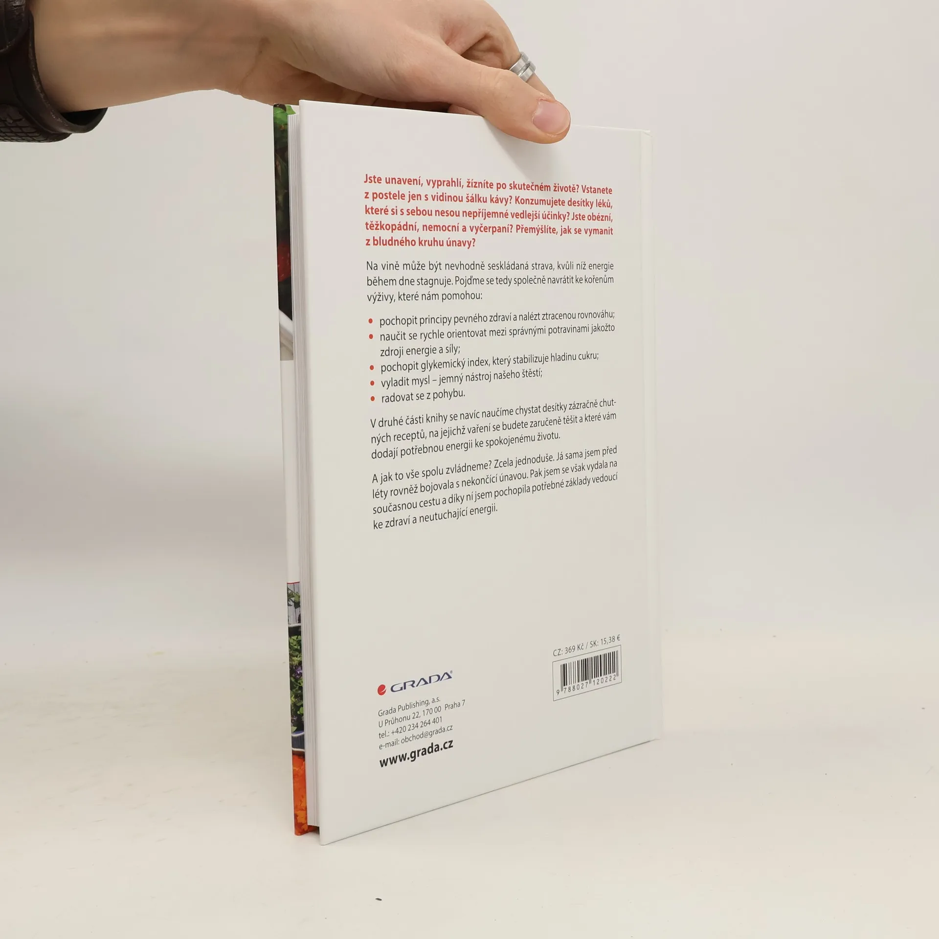 Jste unavení, vyprahlí, žízníte po skutečném životě? Vstanete z postele jen s vidinou šálku kávy? Konzumujete desítky léků, které si s sebou nesou nepříjemné vedlejší účinky? Jste obézní, těžkopádní, nemocní a vyčerpaní? Přemýšlíte, jak se vymanit z bludného kruhu únavy? Na vině může být nevhodně seskládaná strava, kvůli níž energie během dne stagnuje. Navraťte se ke kořenům výživy, které vám pomohou: pochopit principy pevného zdraví a nalézt ztracenou rovnováhu; naučit se rychle orientovat mezi správnými potravinami jakožto zdroji energie a síly; pochopit glykemický index, který stabilizuje hladinu cukru; vyladit mysl – jemný nástroj našeho štěstí; radovat se z pohybu. V druhé části knihy se navíc naučíte chystat desítky zázračně chutných receptů, na jejichž vaření se budete zaručeně těšit a které vám dodají potřebnou energii ke spokojenému životu. A jak to vše zvládnete? Zcela jednoduše. Sama autorka této knihy před léty bojovala s nekončící únavou. Pak se však vydala na současnou cestu a díky ní pochopila potřebné základy vedoucí ke zdraví a neutuchající energii. Najděte s její pomocí novou životní energii!