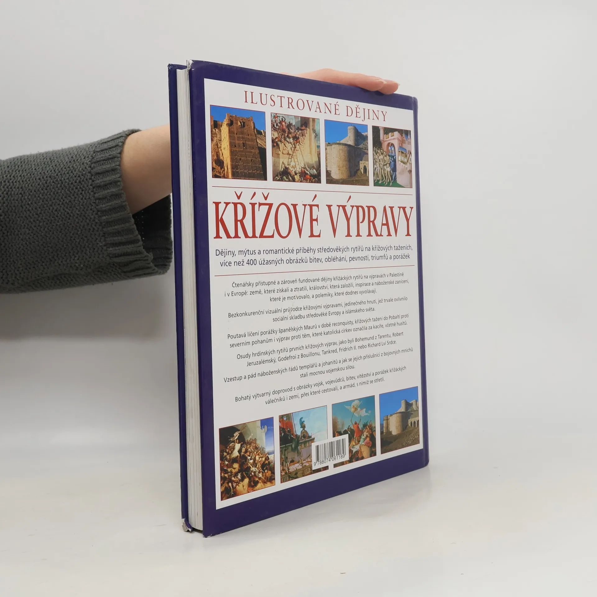 Tento bezkonkurenční vizuální průvodce křížovými výpravami, jedinečného hnutí, jež trvale ovlivnilo sociální skladbu středověké Evropy a islámského světa, vám přiblíží porážky španělských Maurů v době reconquisty, křížová tažení do Pobaltí proti severním pohanům i výpravy proti těm, které katolická církev označila za kacíře, včetně husitů. Seznámíte se s osudy hrdinských rytířů prvních křížových výprav, jako byli Bohemund z Tarentu, Robert Jeruzalémský, Godefroi z Bouillonu, Tankred, Fridrich II. nebo Richard Lví Srdce. Poutavý text doplňuje bohatý výtvarný doprovod s obrázky vojsk, vojevůdců, bitev, vítězství a porážek křižáckých válečníků i zemí, přes které cestovali, a armád, s nimiž se střetli.