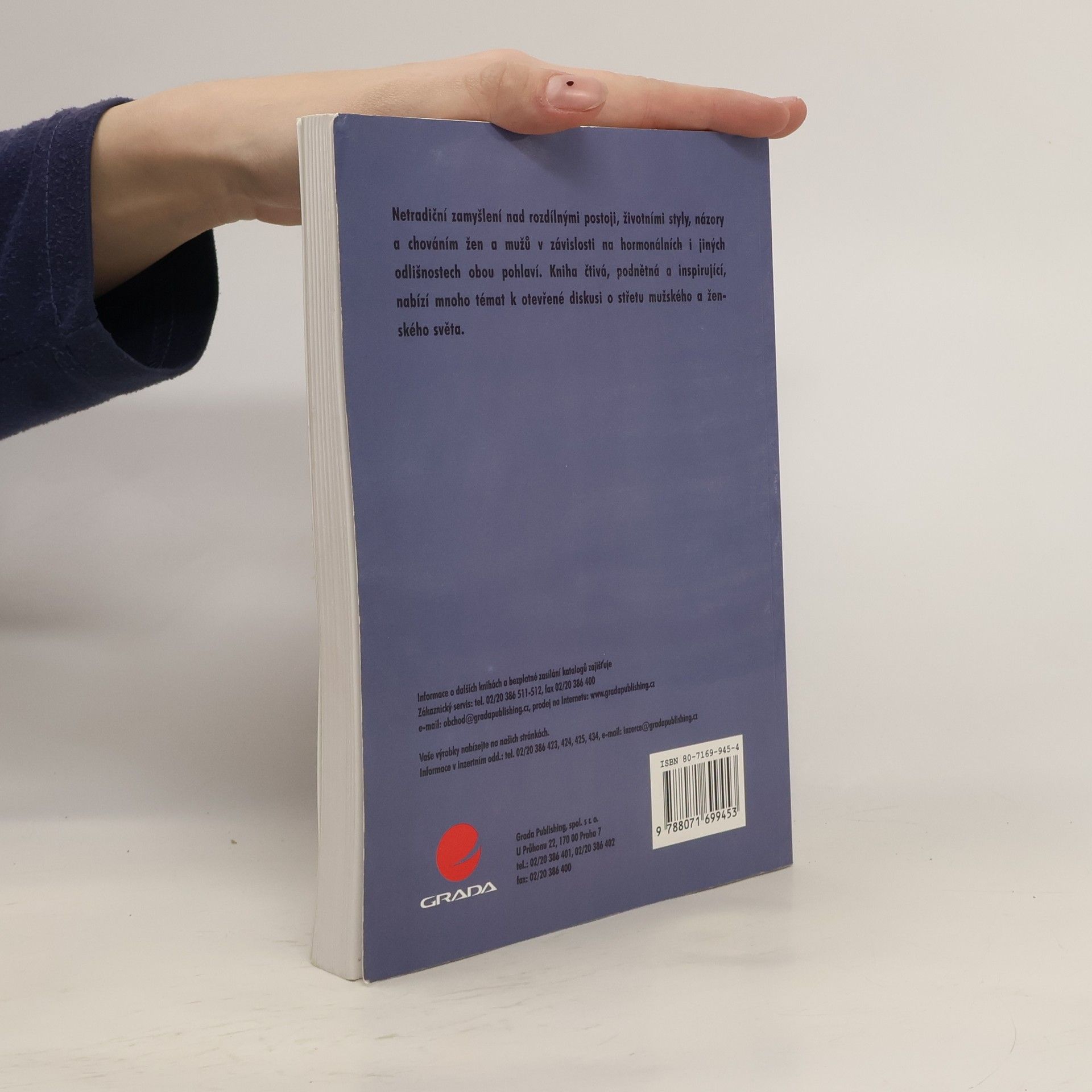Další velmi zajímavá kniha o vztazích mezi mužem a ženou, nutno ovšem podotknout, že opět určitě pro náročnější čtenářskou skupinu. Nabízí netradiční zamyšlení nad rozdílnými postoji, životními styly, názory a chováním žen a mužů v závislosti na hormonech i jiných odlišnostech obou pohlaví. Kniha je čtivá, podnětná a inspirující, nabízí mnoho témat k otevřené diskusi o střetu mužského a ženského světa. Mimo jiné zde naleznete zajímavou kapitolu Muži, ženy a jídlo I. a II.