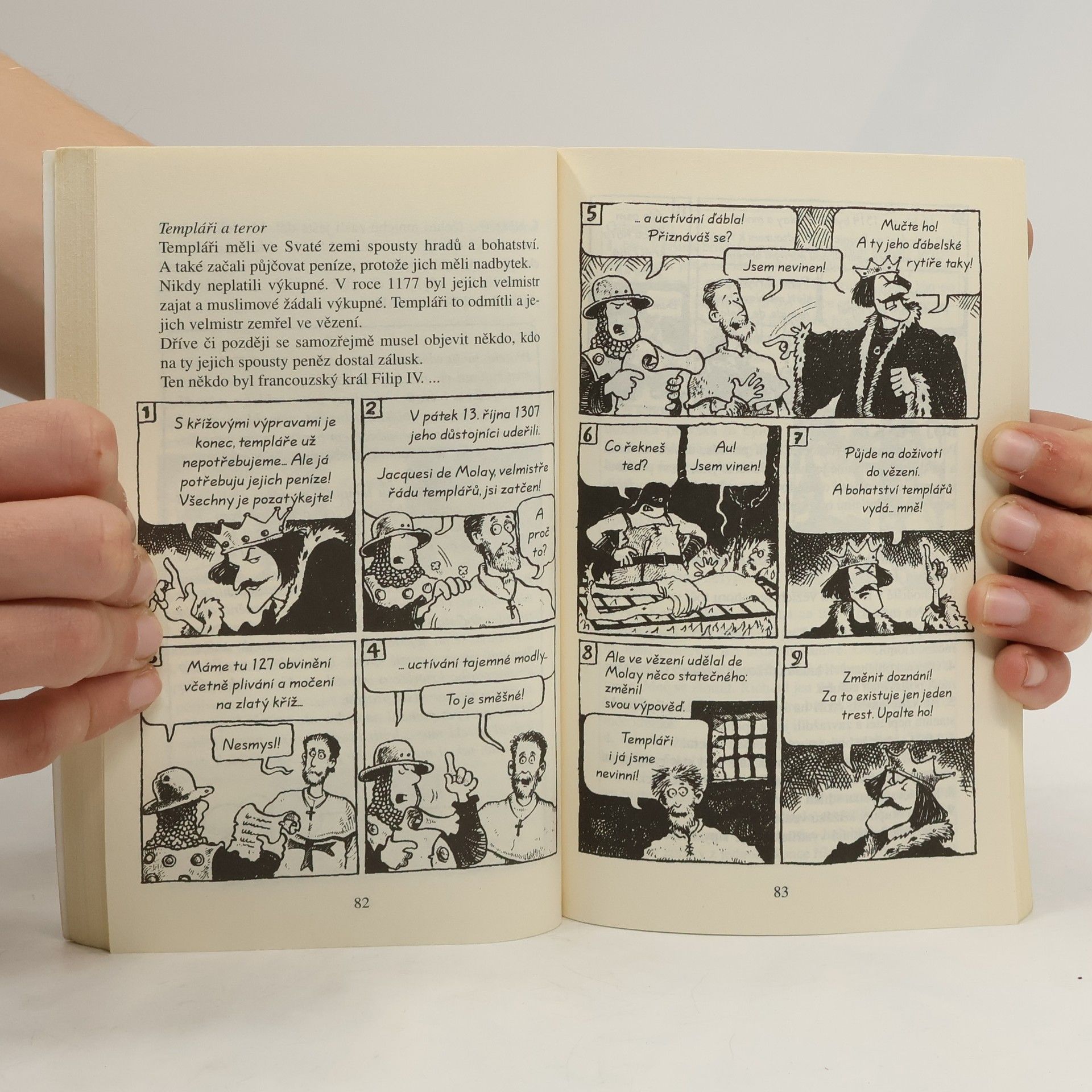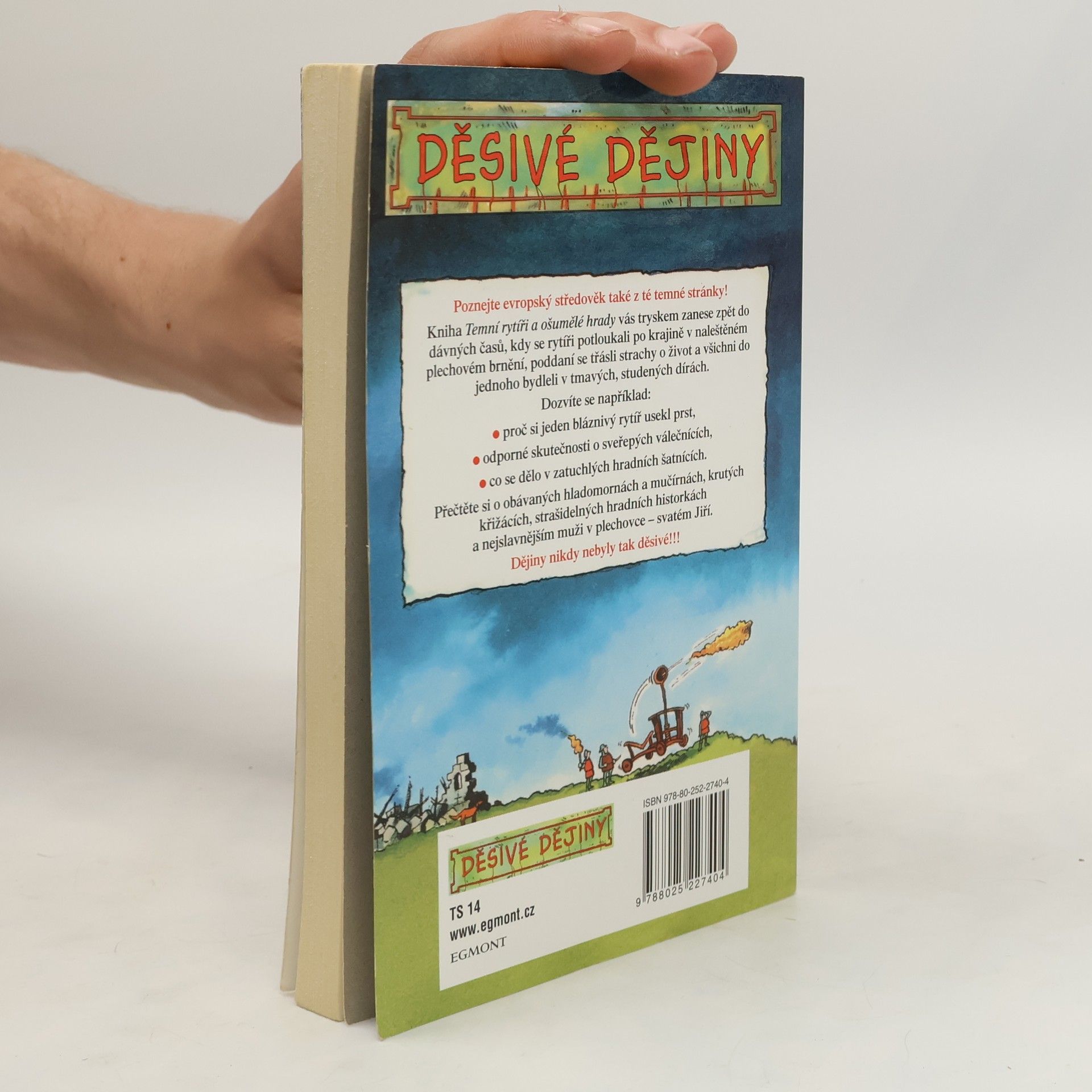 Dějiny, o kterých se vám učitelé neodvažují říct! Tato kniha vás tryskem zanese zpět do dávných časů, kdy se rytíři potloukali po krajině v naleštěném plechovém brnění, poddaní se třásli strachy o život a všichni do jednoho bydleli v tmavých, studených dírách. Přečtěte si o obávaných hladomornách a mučírnách, krutých křižácích, strašidelných hradních historkách a nejslavnějším muži v plechovce – svatém Jiří. Dějiny ještě nikdy nebyly tak děsivé!