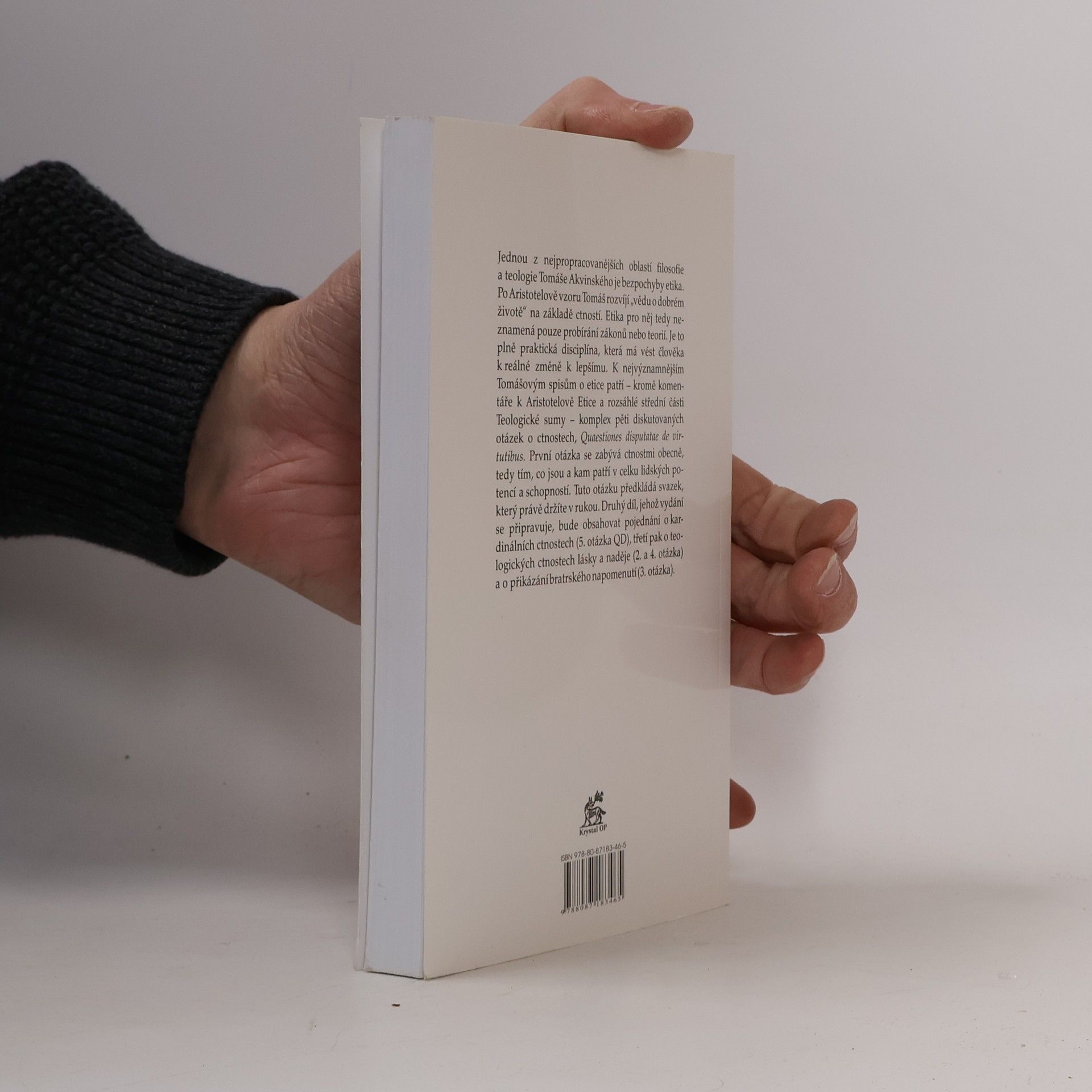 O ctnostech obecně. / Jednou z nejpropracovanějších oblastí filosofie a teologie Tomáše Akvinského je bezpochyby etika. Po Aristotelově vzoru Tomáš rozvíjí „vědu o dobrém životě“ na základě ctností. Etika pro něj tedy neznamená pouze probírání zákonů nebo teorií. Je to plně praktická disciplína, která má vést člověka k reálné změně k lepšímu. K nejvýznamnějším Tomášovým spisům o etice patří – kromě komentáře k Aristotelově etice a rozsáhlé střední části Teologické sumy – komplex pěti diskutovaných otázek o ctnostech, Quaestiones disputatae de virtutibus. První otázka se zabývá ctnostmi obecně, tedy tím, co jsou a kam patří v celku lidských potencí a schopností. Tuto otázku předkládá svazek, který právě držíte v rukou. Druhý díl, jehož vydání se připravuje, bude obsahovat pojednání o kardinálních ctnostech (5. otázka QD), třetí pak o teologických ctnostech lásky a naděje (2. a 4. otázka) a o přikázání bratrského napomenutí (3. otázka).