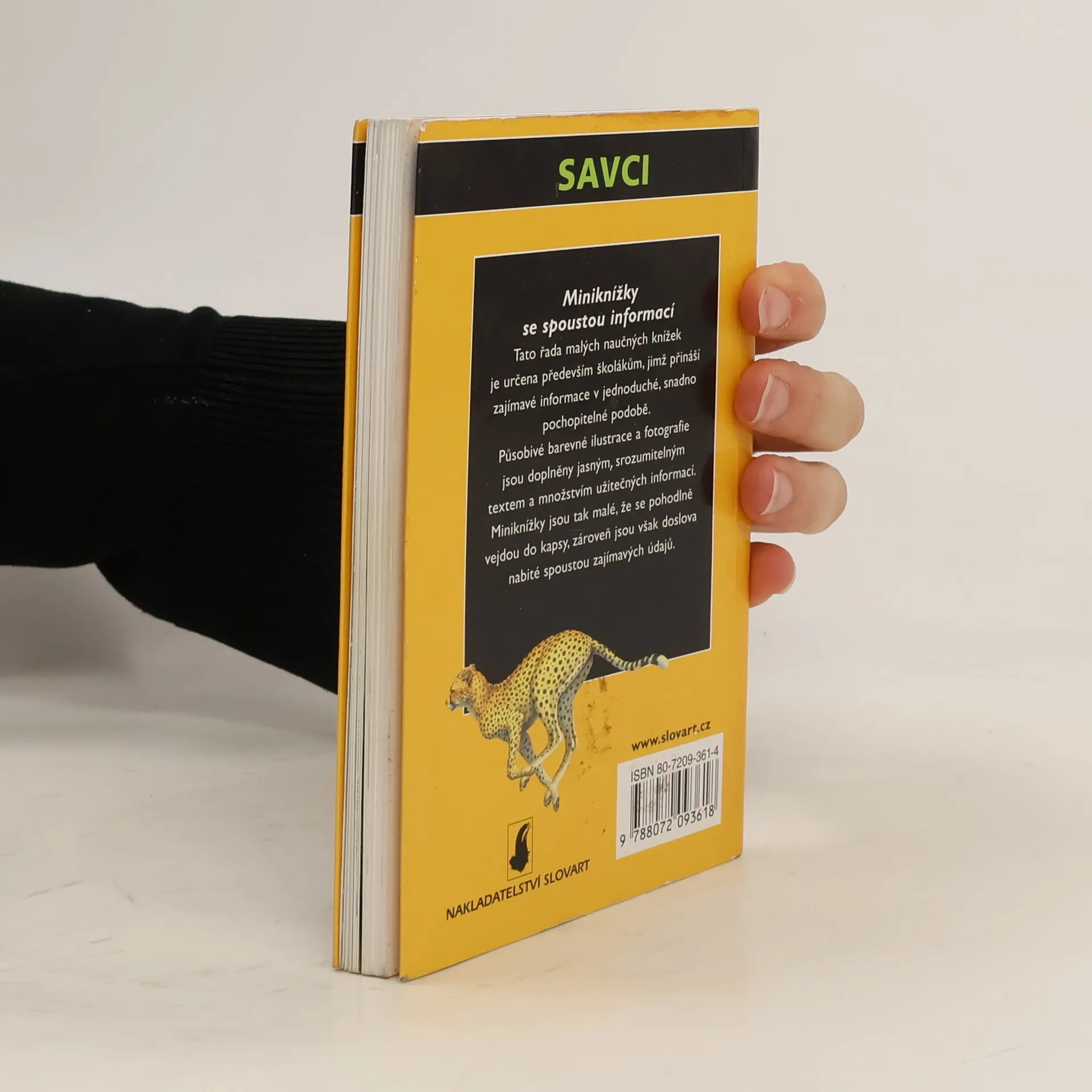 Knížka přináší velké množství zásadních informací o savcích od aguti po zebry. Úvodní část obsahuje, co jsou savci a jaký je jejich svět. Další část je zaměřena na podivuhodné žití těchto teplokrevných tvorů včetně úžasných způsobů, které se u nich vyvinuly, aby dokázali polapit kořist, ochránit se i vyhledat si partnera. V části Atlas savců je popsáno a zobrazeno více než 100 živočichů. Miniknížky - tato řada malých naučných knížek je určena především školákům, jimž přináší zajímavé informace. Působivé barevné ilustrace a fotografie jsou doplněny jasným, srozumitelným textem a množstvím užitečných informací.