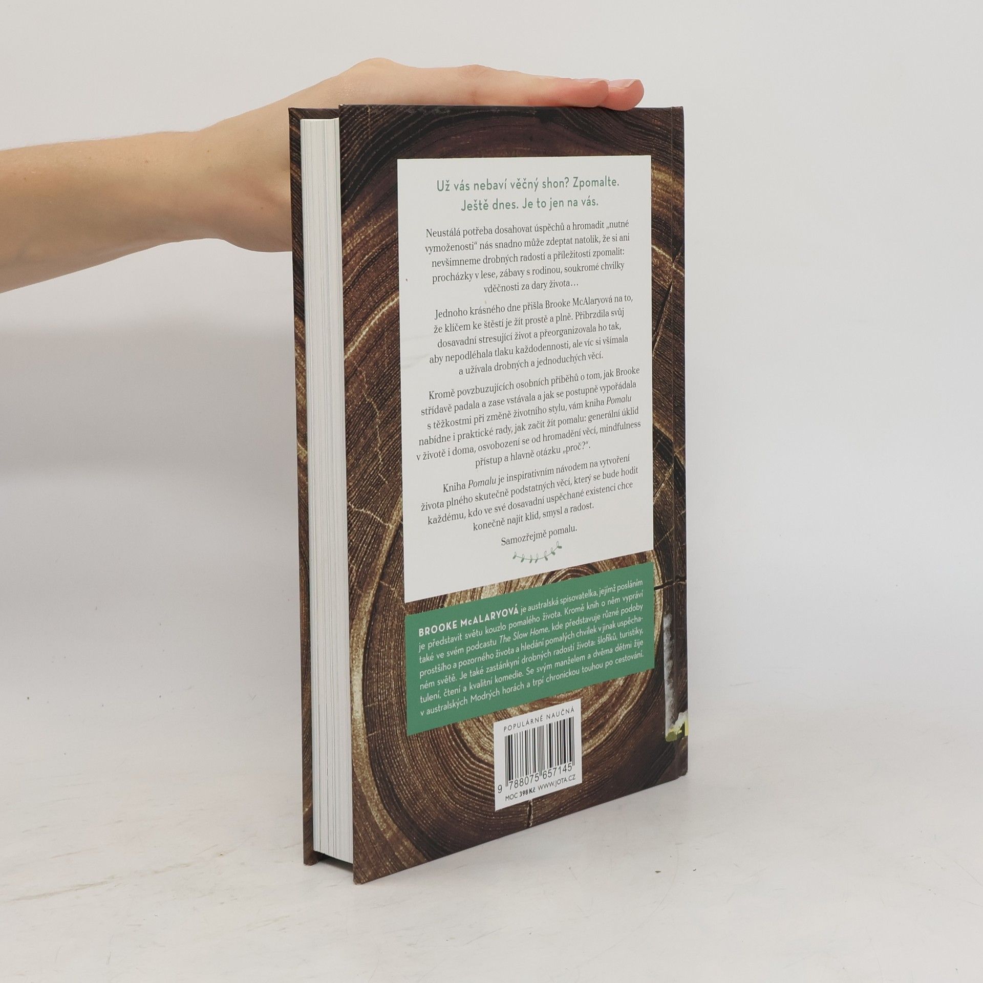 Neustálá potřeba dosahovat úspěchů a hromadit „nutné vymoženosti“ nás snadno může zdeptat natolik, že si ani nevšimneme drobných radostí a příležitostí zpomalit: procházky v lese, zábavy s rodinou, soukromé chvilky vděčnosti za dary života... Jednoho krásného dne přišla Brooke McAlaryová na to, že klíčem ke štěstí je žít prostě a plně. Přibrzdila svůj dosavadní stresující život a přeorganizovala ho tak, aby nepodléhala tlaku každodennosti, ale víc si všímala a užívala drobných a jednoduchých věcí. Kromě povzbuzujících osobních příběhů o tom, jak Brooke střídavě padala a zase vstávala a jak se postupně vypořádala s těžkostmi při změně životního stylu, vám kniha Pomalu nabídne i praktické rady, jak začít žít pomalu: generální úklid v životě i doma, osvobození se od hromadění věcí, mindfulness přístup a hlavně otázku „proč?“. Kniha Pomalu je inspirativním návodem na vytvoření života plného skutečně podstatných věcí, který se bude hodit každému, kdo ve své dosavadní uspěchané existenci chce konečně najít klid, smysl a radost. Samozřejmě pomalu.