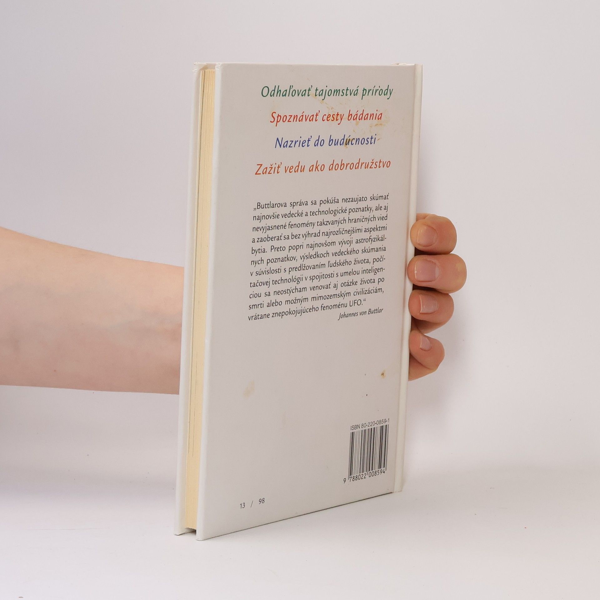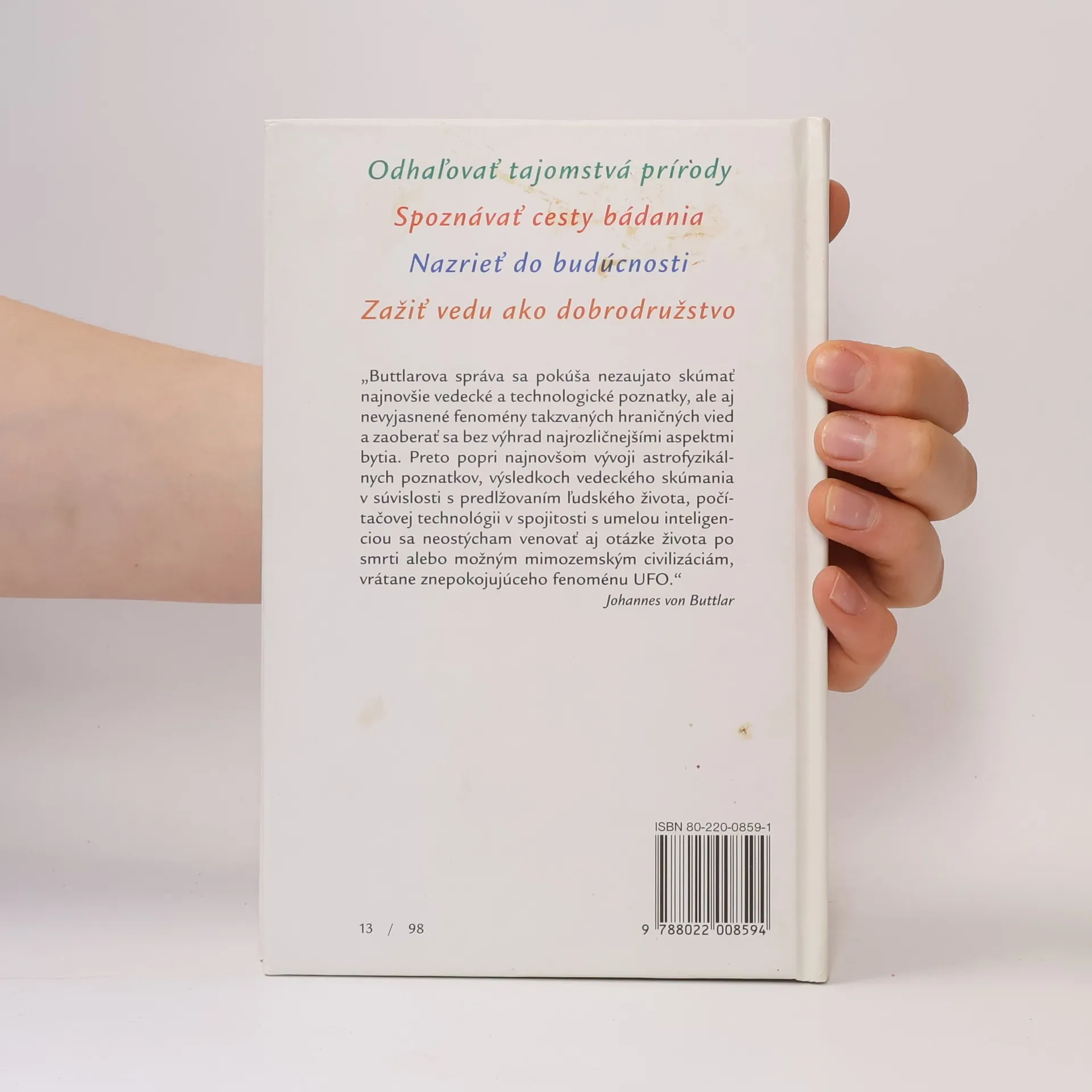 Buttlarova správa sa pokúša nezaujato skúmať najnovšie vedecké a technologické poznatky, ale aj nevyjasnené fenomény takzvaných hraničných vied a zaoberať sa bez výhrad najrozličnejšími aspektmi bytia. Preto popri najnovšom vývoji astrofyzikálnych poznatkov, výsledkoch vedeckého skúmania v súvislosti s predlžovaním ľudského života, počítačovej technológie v spojitosti s umelou inteligenciou sa autor neostýcha venovať aj otázke života po smrti alebo možným mimozemským civilizáciám, vrátane znepokojujúceho fenoménu UFO.