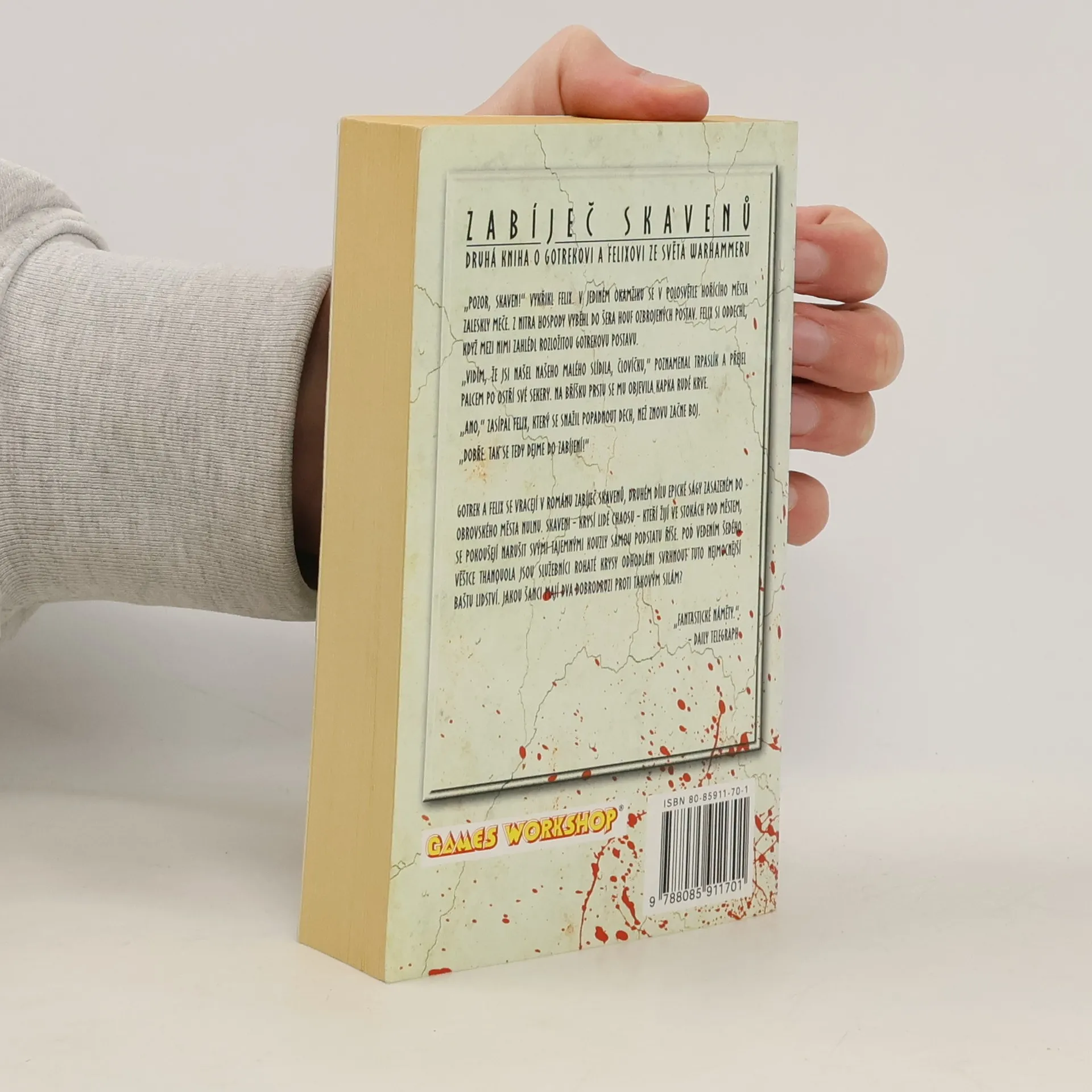 Gotrek a Felix se vracejí v románu Zabíječ Skavenů, druhém dílu epické ságy zasazeném do obrovského města Nulnu. Skaveni – krysí lidé chaosu – kteří žijí ve stokách pod městem, se pokoušejí narušit svými tajemnými kouzly samou podstatu říše. Pod vedením šedého věštce Thanquola jsou služebníci Rohaté krysy odhodláni svrhnout tuto nejmocnější baštu lidí. Jakou šanci mají dva dobrodruzi proti takovým silám?