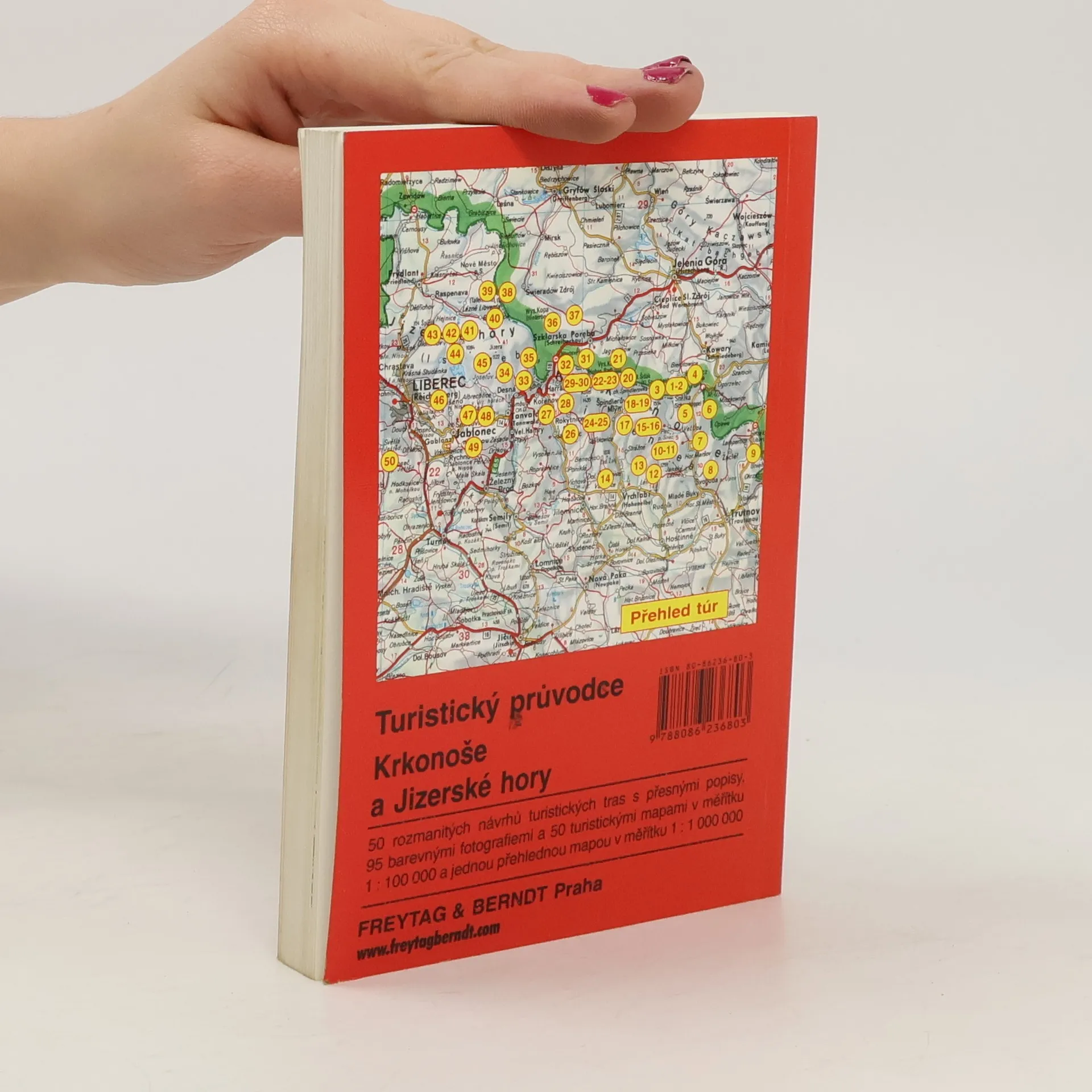 Průvodce nabízí 32 vybraných turistických tras v Krkonoších a 18 v Jizerských horách s přesným popisem cesty, představením zajímavých míst a podrobnými mapkami v měřítku 1 : 75 000. Součástí publikace je celková charakteristika přírody Krkonoš a Jizerských hor, přehled příjezdových a výchozích míst nebo informace o krkonošských a jizerských boudách. Nechybějí ani pokyny pro horskou turistiku a rejstřík. Atmosféru hor dokresluje zhruba stovka fotografií. (50 vybraných turistických tras : doplněno 95 barevnými fotografiemi, 50 turistickými mapami v měřítku 1:75 000 a jednou přehlednou mapou 1:1 000 000)