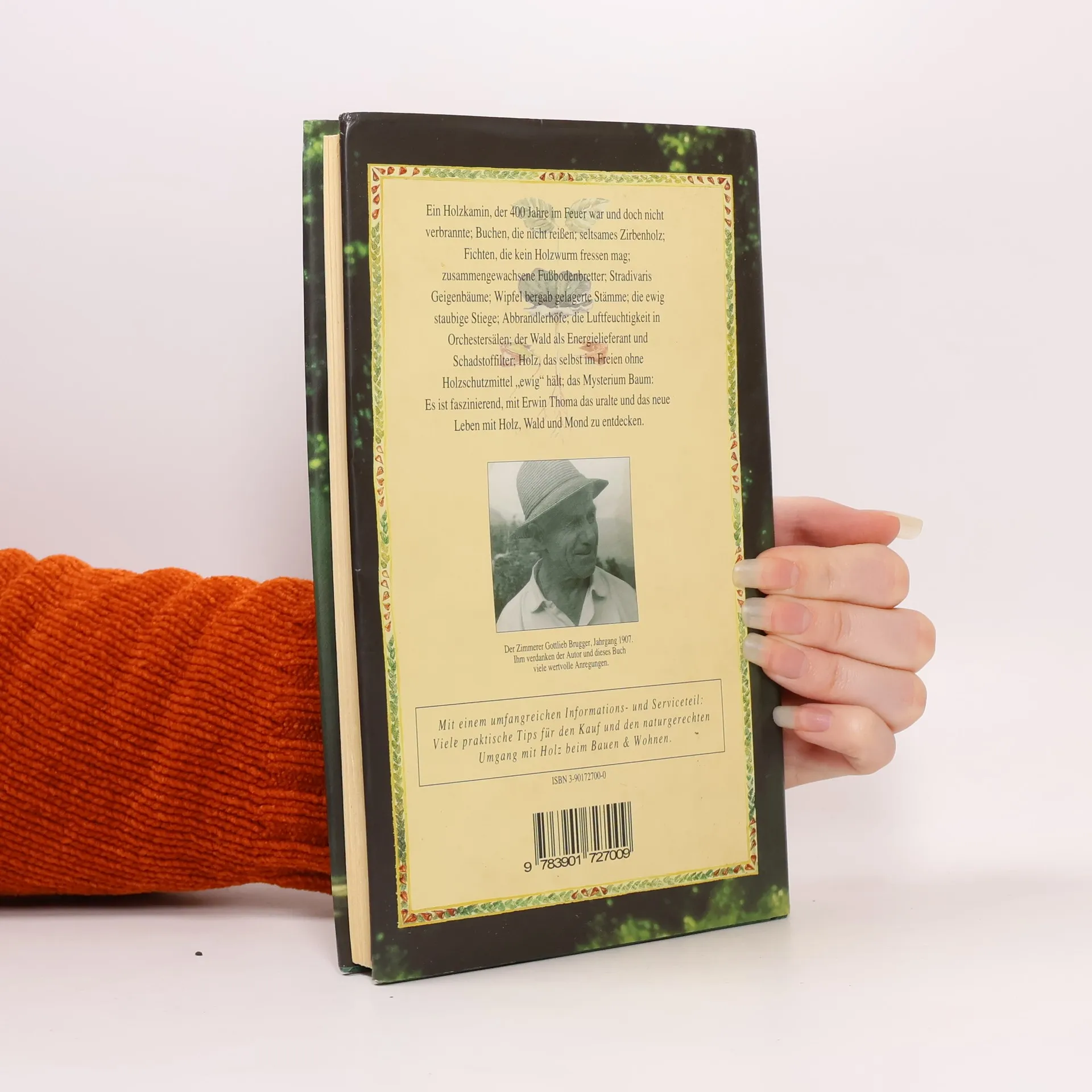Ein Holzkamin, der 400 Jahre im Feuer war und nicht verbrannte; Buchen, die nicht reißen; seltsames Zirbenholz; Fichten, die kein Holzwurm mag; zusammengewachsene Fußbodenbretter; Stradivaris Geigenbäume; das Geheimnis von Wipfel gelagerten Stämmen; zwei Alphörner aus dem gleichen Stamm, die unterschiedlich klingen; zwei Brüder am Abgrund; die staubige Stiege; Abbrandlerhöfe; die Luftfeuchtigkeit in Orchestersälen; der Wald als Energielieferant und Schadstofffilter; Holz, das ohne Holzschutzmittel „ewig“ hält. Das Mysterium Baum: Mit Erwin Thoma entdeckt man das uralte und neue Leben mit Holz, Wald und Mond. Das Buch bietet 216 Seiten in einem handlichen Format mit zahlreichen SW-Illustrationen und einem Farbbildteil. Es enthält einen umfangreichen Informations- und Serviceteil mit praktischen Tipps für den Kauf und den naturgerechten Umgang mit Holz beim Bauen und Wohnen. Der Autor, Erwin Thoma, geboren 1962 in Bruck am Großglockner, lebt mit seiner Familie in St. Johann im Pongau. Nach seiner Ausbildung zum Förster betreute er ein Revier im Tiroler Karwendelgebirge und war anschließend im konventionellen Holzhandel tätig. Inspiriert von dem alten Zimmermann Gottlieb Brugger, entdeckte er das Wissen um Holz, Mond und naturgerechtes Bauen neu. Heute betreibt er ein Säge- und Hobelwerk und bietet Holz für Hausbau, Fußböden und Möbel an.