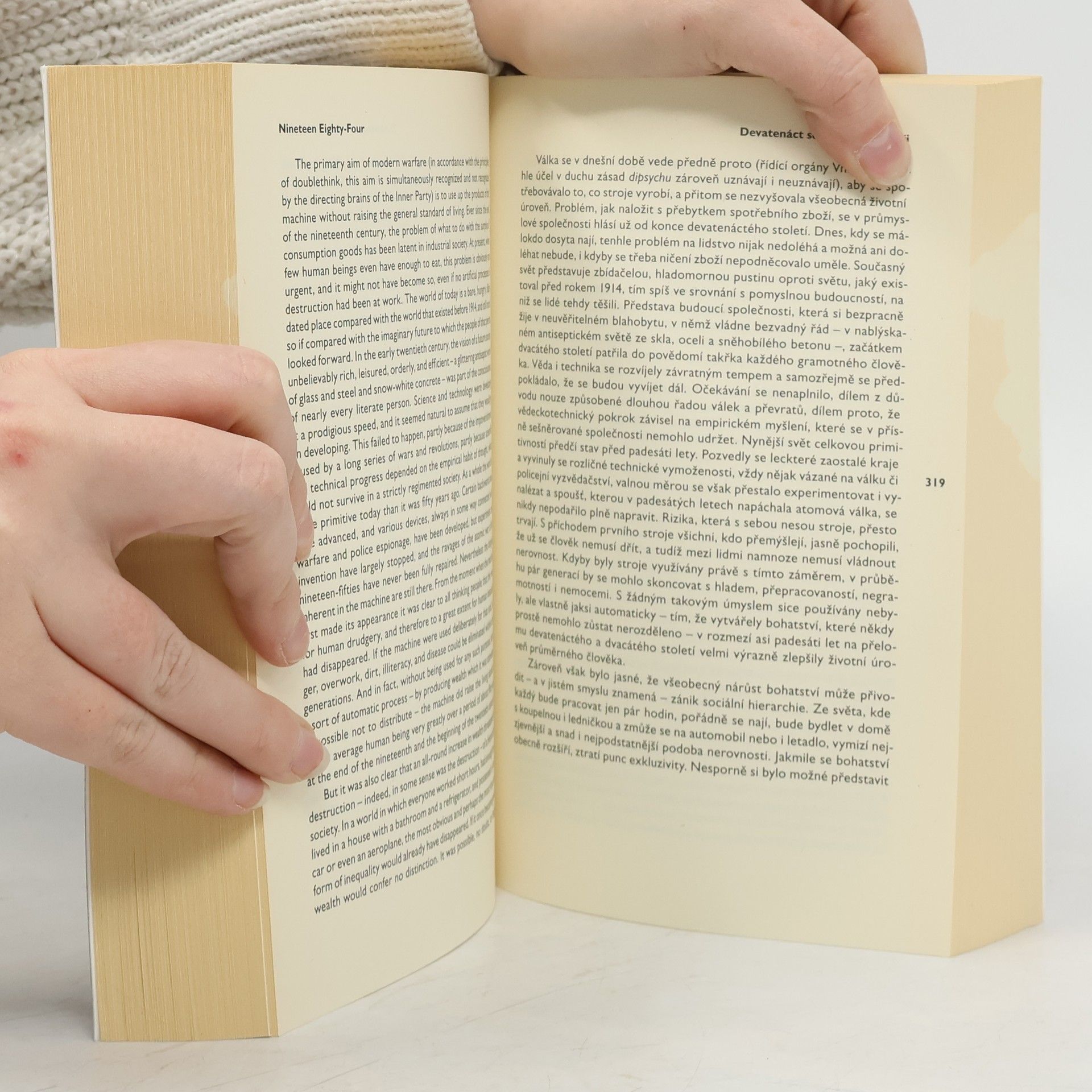 Bilingvní vydání slavného románu, který vyšel již v roce 1949 a byl inspirován stalinistickým režimem. Vize totalitní společnosti, kde není místo pro lásku, vlastní názor ani pro víru ve vlastní smysly, varuje před jakoukoli diktaturou moci. Kniha vychází v novém překladu.