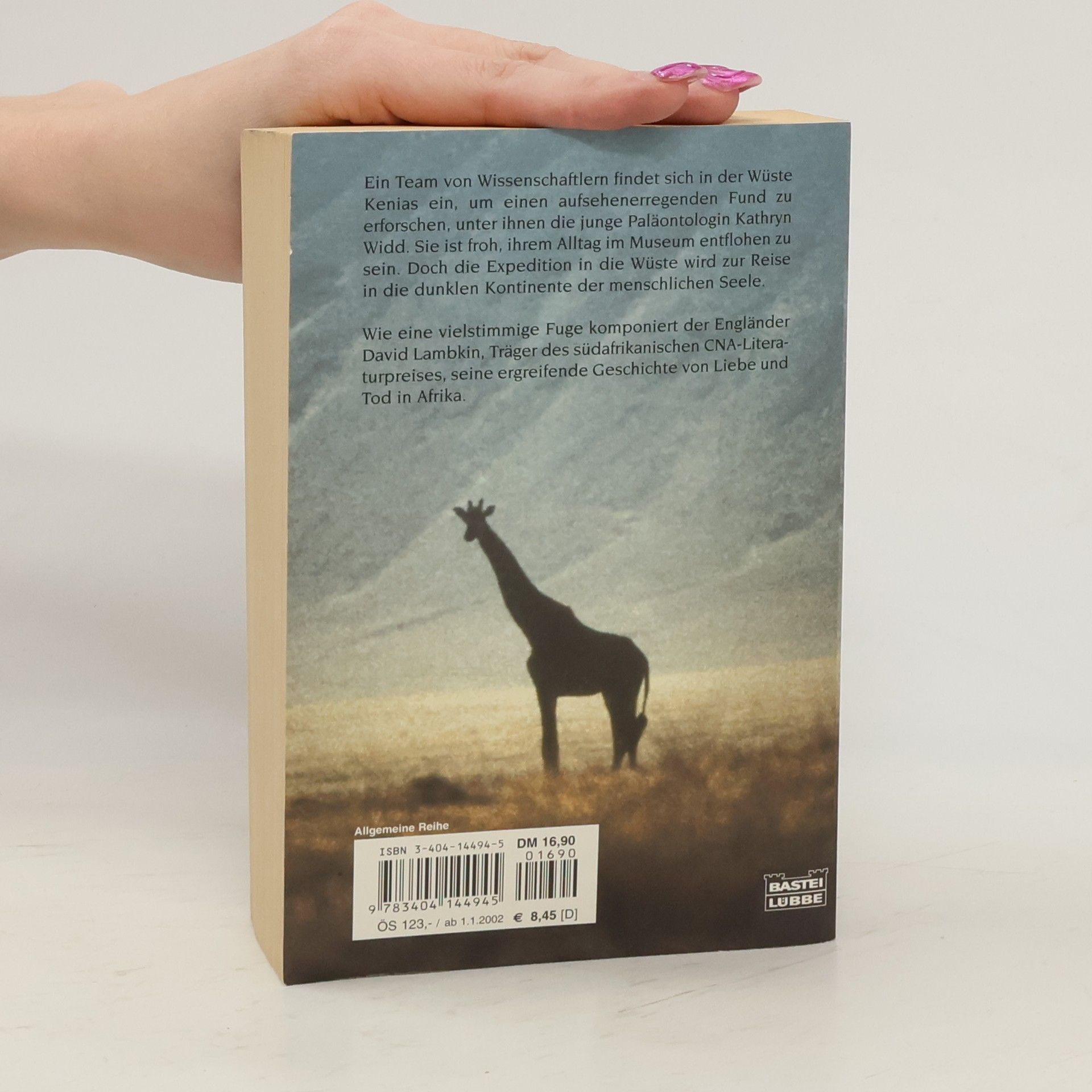 Ein Team von Wissenschaftlern findet sich in der Wüste Kenias ein, um einen aufsehenerregenden Fund zu erforschen, unter ihnen die junge Paläontologin Kathryn Widd. Sie ist froh, ihrem Alltag im Museum zu entflohen zu sein. Doch die Expedition in die Wüste wird zur Reise in die dunklen Kontinente der menschlichen Seele. Wie eine vielstimmige Fuge komponiert der Engländer David Lambkin, Träger des südafrikanischen CNA-Literaturpreises, seine ergreifende Geschichte von Liebe und Tod in Afrika.