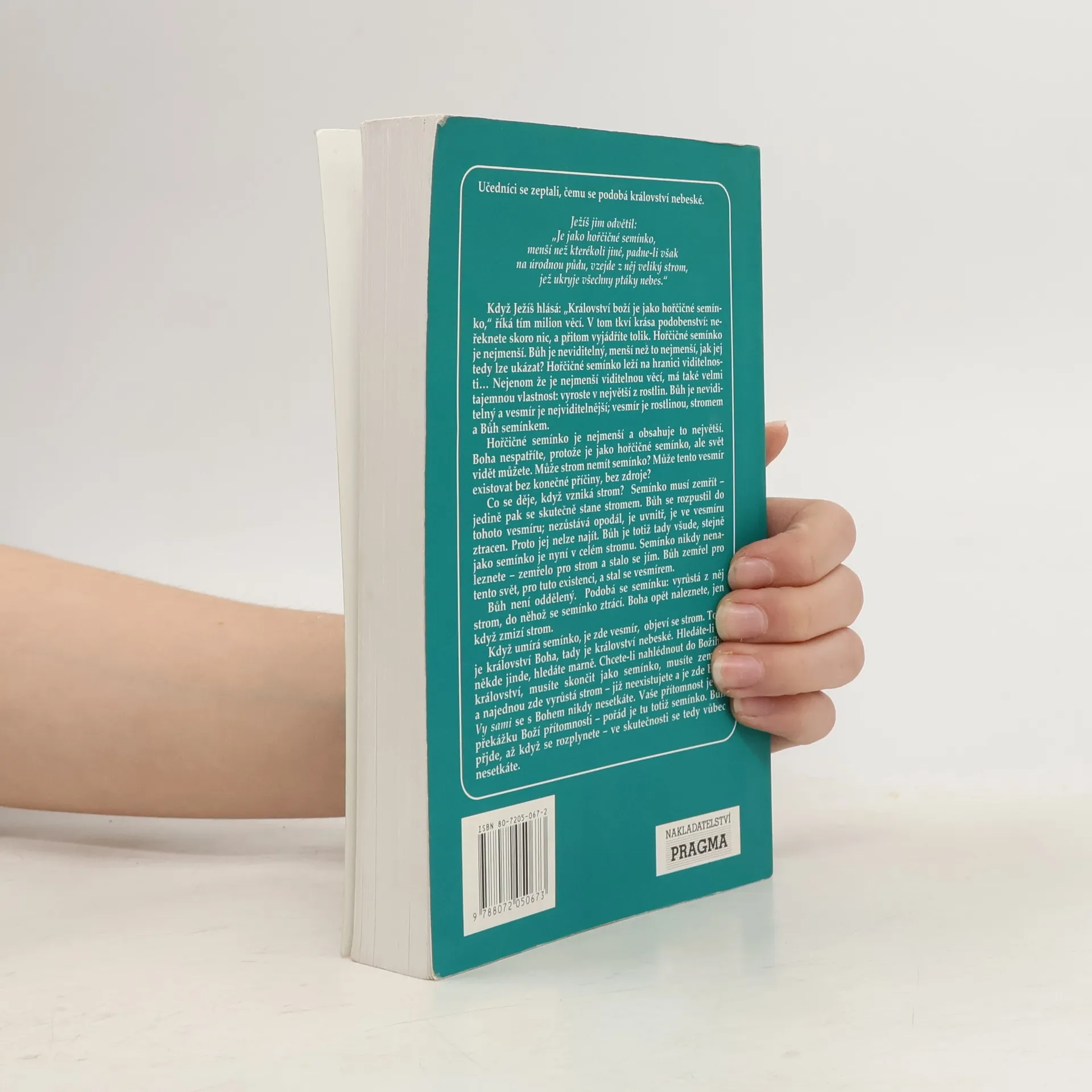 Promluvy o evangeliu podle svatého Tomáše "Království boží je jako hořčičné semínko", říká Ježíš. Semínko musí zemřít - a tak se stane stromem, Bůh se rozpustil do vesmíru, je všude, jako je semínko nyní v celém stromu. Kniha obsahuje 21 promluv nad citáty z Tomášova evangelia.