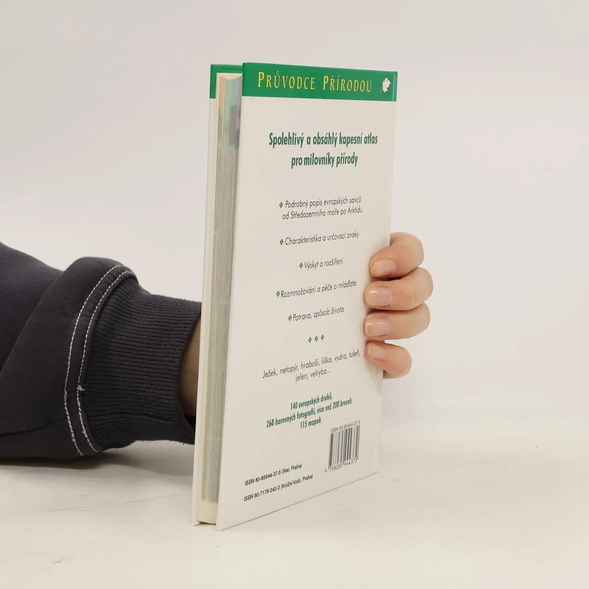 Obrazový atlas evropských druhů savců. Kapesní atlas s krásnými fotografiemi představuje nejtypičtější a nejzajímavější druhy evropských savců. Texty u fotografií charakterizují stručně živočichy, poskytují informace o způsobu jejich života, rozšíření, rozmnožování, o jejich chování a ekologické roli v přírodě. Kniha je členěna systematicky, devět řádů savců je označeno na okrajích stránek symboly se siluetami jejich zástupců. Připojeny jsou i charakteristiky jednotlivých řádů.