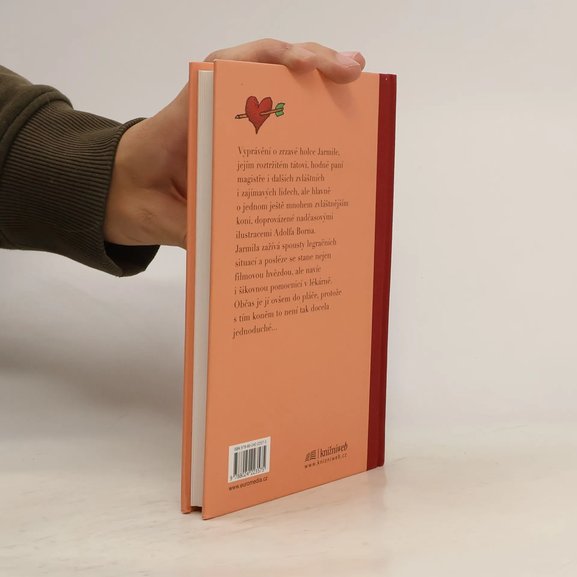 Vyprávění o zrzavé holce Jarmile, jejím roztržitém tátovi, hodné paní magistře i dalších zvláštních i zajímavých lidech, ale hlavně o jednom ještě mnohem zvláštnějším koni. Jarmila zažívá spousty legračních situací a posléze se stane nejen filmovou hvězdou, ale navíc i šikovnou pomocnicí v lékárně. Občas je jí ovšem do pláče, protože s tím koněm to není tak docela jednoduché... Mladým čtenářkám bude knížka jistě blízká, ale i jejich maminkám leccos z dřívějška připomene. Poprvé totiž vyšla už v roce 1976, bohužel ne pod jménem autorky, která tehdy nesměla publikovat. Poutavé čtení o lásce a holčičích trampotách, plné vtipu a humorných situací, lety nijak neztratilo na půvabu.