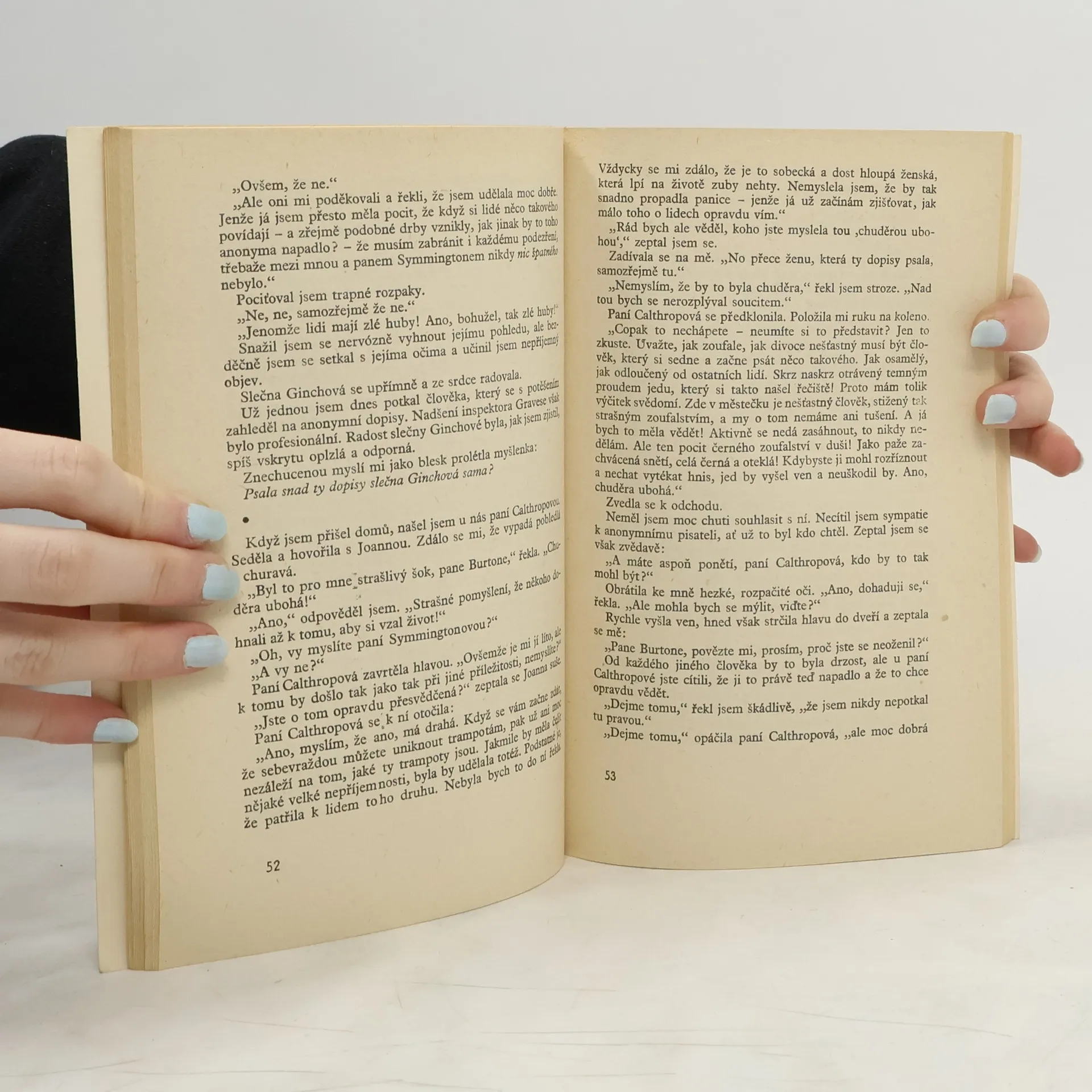 Mladý pilot Jerry Burton se po těžké havárii usadil na okraji malého klidného městečka Lymstocku, kde se o jeho úplnou rekonvalescenci postará jeho sestra Joanna. Jednoho rána je mezi poštou dopis s místním razítkem a adresou napsanou na psacím stroji. Dopis poskládaný ze slov vystřižených znovin je anonymem, který tvrdí, že Jerry a Joanna nejsou „jen“ bratrem a sestrou. Zjistí, že podobný dopis – týkající se vždy milostného života – dostalo více obyvatel Lymstocku… Edice Čtení na dovolenou.