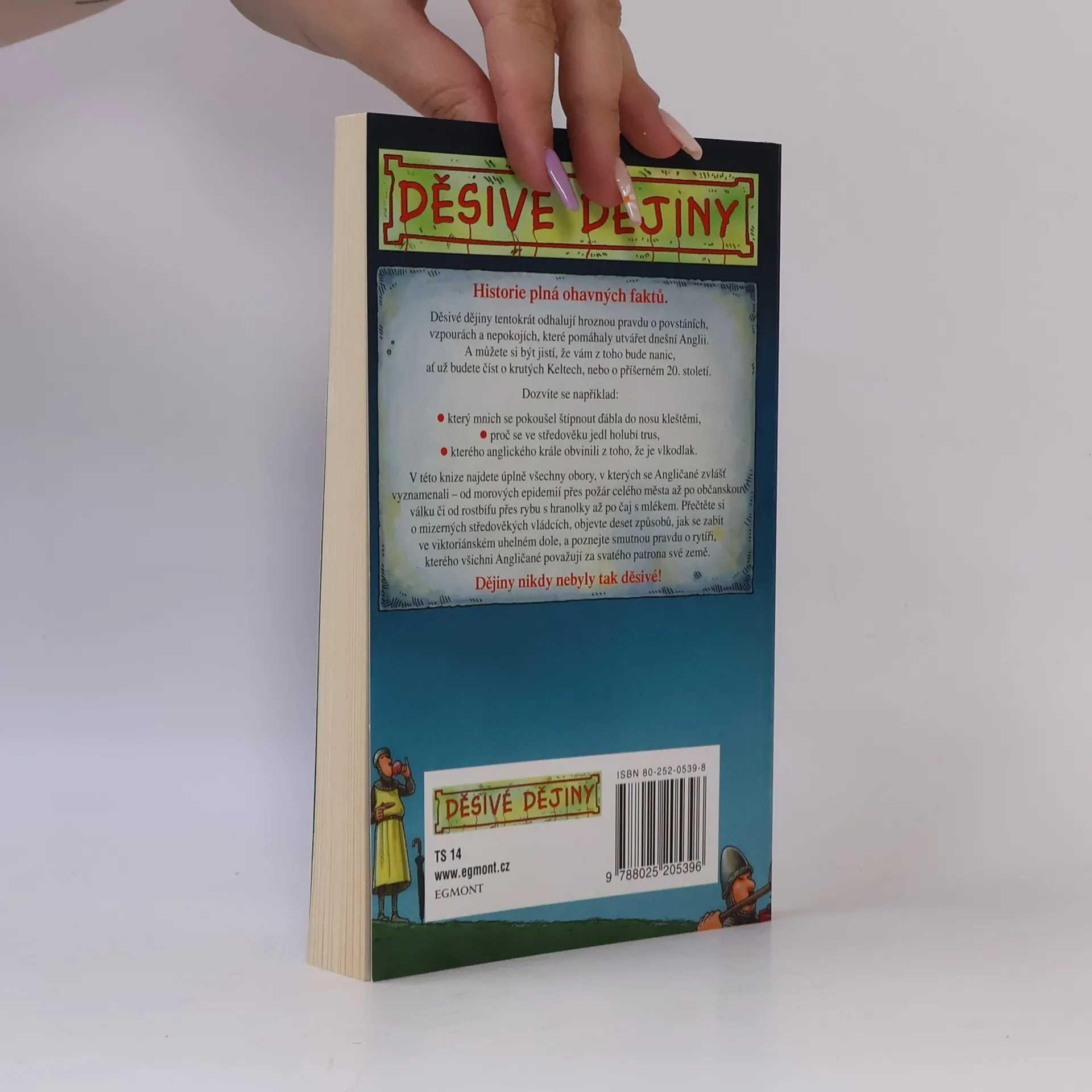Přečtěte si hroznou pravdu o povstáních, vzpourách a nepokojích, které pomáhaly utvářet dnešní Anglii. A můžete si být jistí, že vám z toho bude pěkně nanic, ať už budete číst o krutých Keltech, nebo o příšerném 20. století. Dozvíte se například, který mnich se pokoušel štípnout ďábla do nosu kleštěmi, proč se ve středověku jedl holubí trus nebo kterého anglického krále obvinili z toho, že je vlkodlak. V této knize najdete úplně všechno, co má něco společného s Angličany - od moru přes požár až po občanskou válku nebo od rostbífu přes, rybu s hranolky až po šálek čaje. Přečtěte si o mizerných středověkých vládcích, objevte deset způsobů, jak se zabít ve viktoriánském uhelném dole a poznejte smutnou pravdu o rytíři Jiřím, kterého všichni Angličané považují za svatého patrona své země. Dějiny nikdy nebyly tak děsivé!