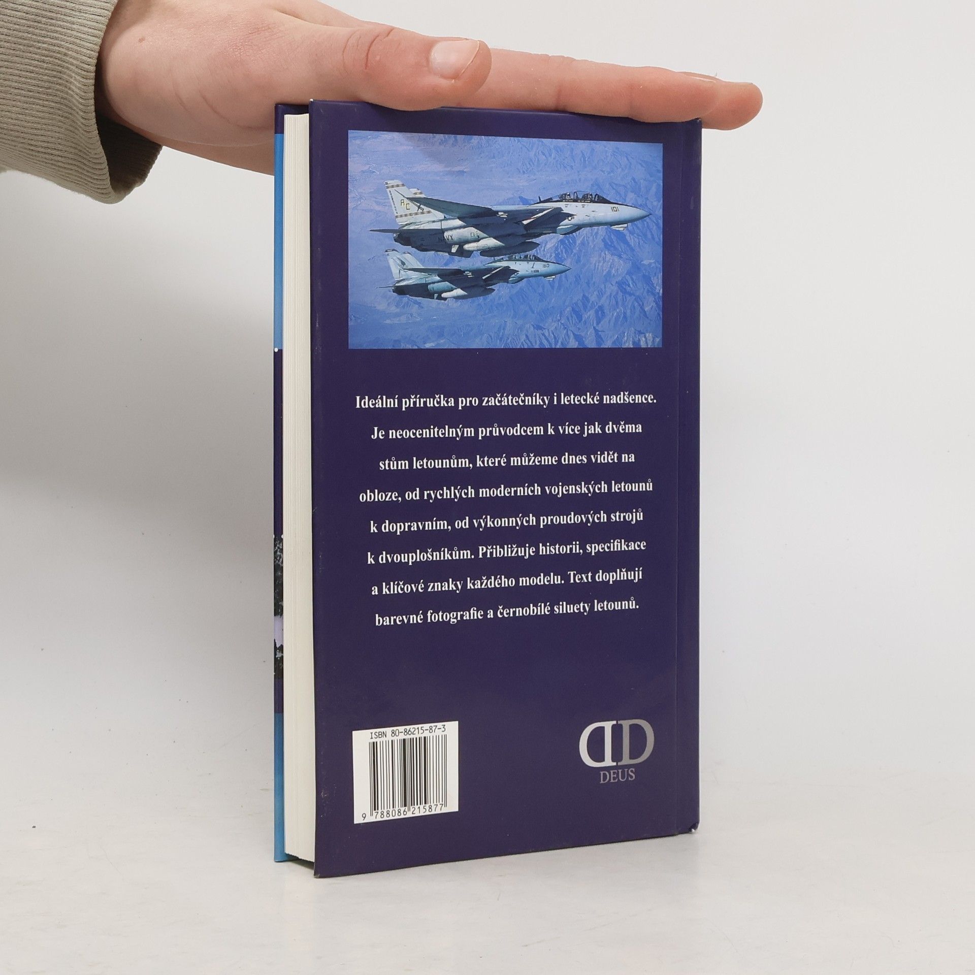 S podtitulem: Příručka pro rozpoznávání letadel. Ideální příručka pro začátečníky i letecké nadšence. Je neocenitelným průvodcem k více jak dvěma stům letounům, které můžeme dnes vidět na obloze, od rychlých moderních vojenských letounů k dopravním, od výkonných proudových strojů k dvouplošníkům. Přibližuje historii, specifikace a klíčové znaky každého modelu. Text doplňují barevné fotografie a černobílé siluety letounů.... celý text