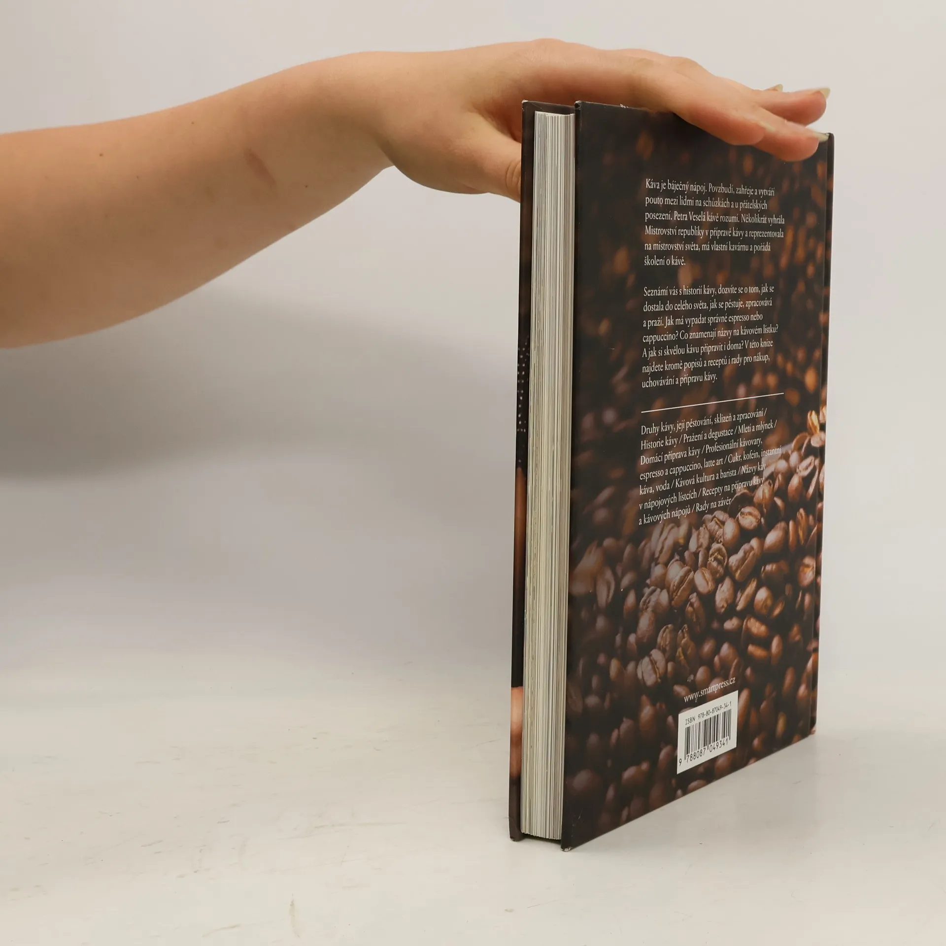 Petra Veselá Vás v knize Kniha o kávě seznámi s historií kávy, dozvíte se o tom, jak se dostala do celého světa, jak se pěstuje, zpracovává a praží. Existují různé druhy a odrůdy kávy a každá z nich má svou specifickou chuť, to, jak káva chutná, ovlivňuje také pražení, mletí, uchovávání. Další část knihy se věnuje samotným nápojům. Jak má vypadat espresso nebo cappuccino? Co znamenají názvy na kávovém lístku? A jak si skvělou kávu připravit i doma? Tipy pro nákup, uchovávání a přípravu kávy, popisy a spousta skvělých receptů na přípravu různých druhů kávy. Káva je jedním z nejoblíbenějších nápojů. Povzbudí, zahřeje a vytváří pouto mezi lidmi na schůzkách a u přátelských posezení. Nabízí se bezpočet možností, jak ji připravit, ale také jak si s ní hrát