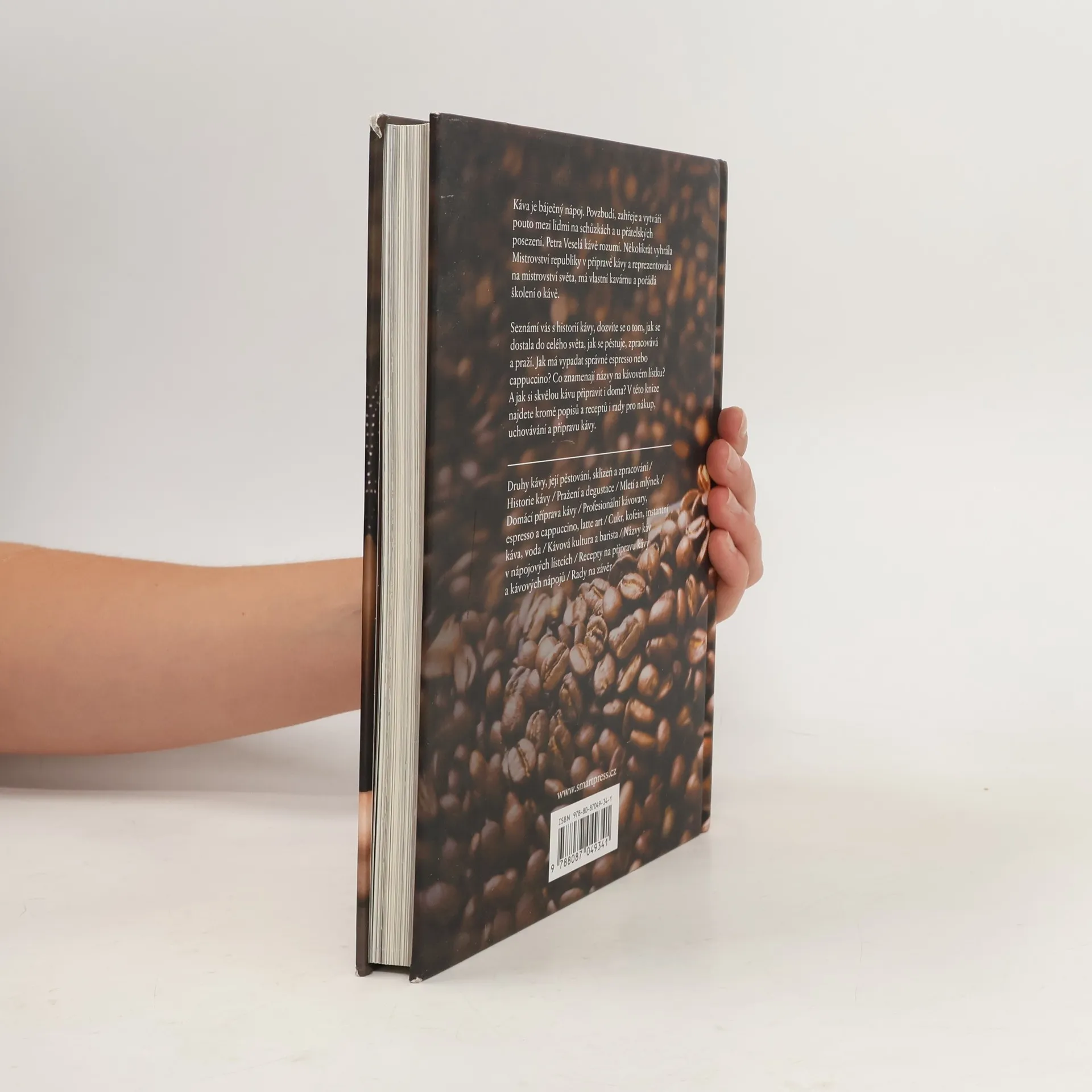 Petra Veselá Vás v knize Kniha o kávě seznámi s historií kávy, dozvíte se o tom, jak se dostala do celého světa, jak se pěstuje, zpracovává a praží. Existují různé druhy a odrůdy kávy a každá z nich má svou specifickou chuť, to, jak káva chutná, ovlivňuje také pražení, mletí, uchovávání. Další část knihy se věnuje samotným nápojům. Jak má vypadat espresso nebo cappuccino? Co znamenají názvy na kávovém lístku? A jak si skvělou kávu připravit i doma? Tipy pro nákup, uchovávání a přípravu kávy, popisy a spousta skvělých receptů na přípravu různých druhů kávy. Káva je jedním z nejoblíbenějších nápojů. Povzbudí, zahřeje a vytváří pouto mezi lidmi na schůzkách a u přátelských posezení. Nabízí se bezpočet možností, jak ji připravit, ale také jak si s ní hrát