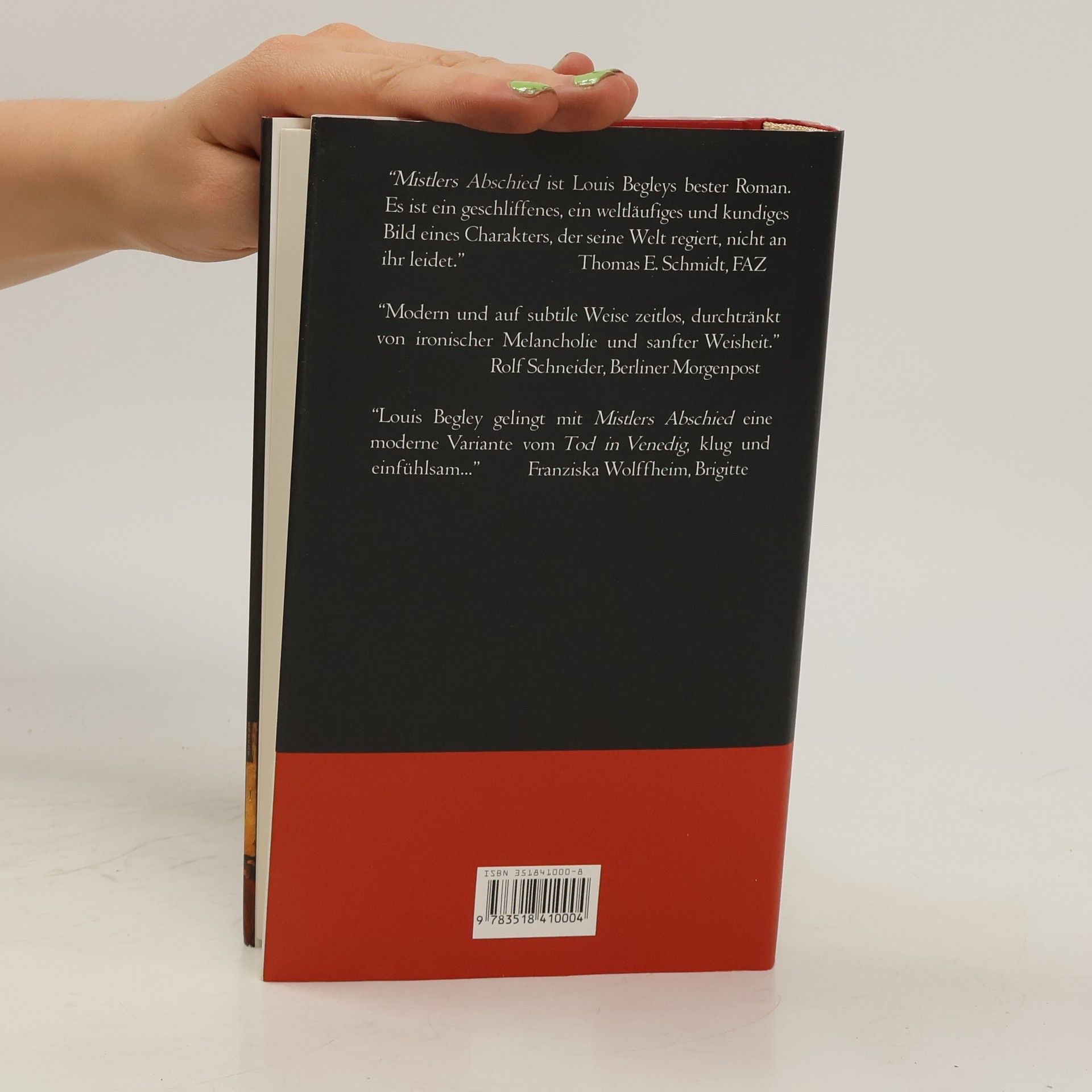 Mit Mistlers Abschied ist Louis Begley ein großer Roman gelungen, ein außerordentlich intensives, ein wundersam berührendes und fesselndes Buch. Es erzählt die Geschichte eines Mannes in den frühen Sechzigern, dem der Arzt soeben den schrecklichen Befund mitgeteilt hat: Krebs. Und: daß Thomas Mistler nur noch ein paar Wochen, vielleicht Monate, Lebenszeit hat. Mistler verschweigt seiner Frau Clara und seinem Sohn Sam die Lage, er reist vielmehr - für ein paar Tage - in das von ihm geliebte Venedig. Und in der »Stadt des Todes« inszeniert Mistler von nun an seinen »Exit«, den »Abschied«. Eine junge Frau taucht auf, eine stürmische, zugleich melancholische und bittere Affäre beginnt, dauert nicht lange, die Frau verläßt ihn. Ein Mann taucht auf, ein Mann von früher, eine andere Frau, ebenfalls eine Erscheinung aus alten Tagen, Bella oder Bunny mit Namen, in die Mistler einmal ungemein verliebt war und die er jetzt »haben« will - für eine letzte amour fou. Dazwischen meldet sich das normale Leben zu Wort: Mistler, Chef einer großen Werbeagentur, will seine Firma verkaufen, telefoniert unablässig mit seinem Anwalt, führt Gespräche mit Clara und Sam, dem er am Ende schreibt, daß er nur noch kurz zu leben hat - und immer wieder holen Erinnerungen Mistler ein, Erinnerungen, die ihn mit sich und seiner Situation konfrontieren.