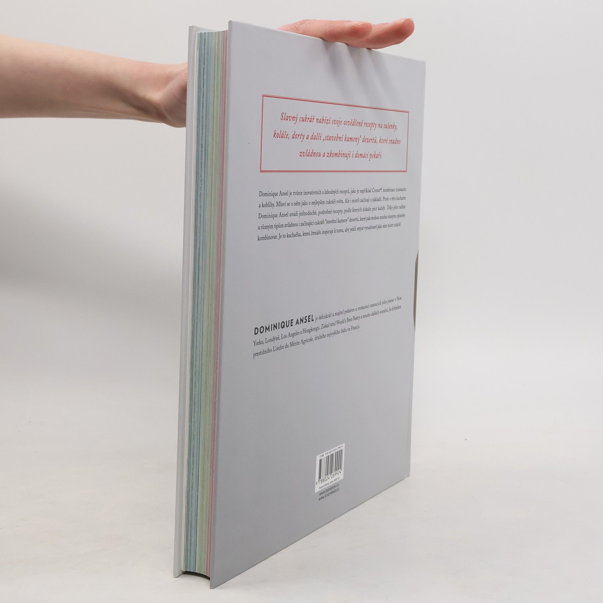 Dominique Ansel je cukrář, tvůrce inovativních, lákavých a lahodných dezertů, jako je Frozen S'more nebo cronut, hybrid croissantu a donutu. Je považován za jednoho z nejlepších světových cukrářů. Vlastní síť cukráren po celém světě. V této kuchařce poprvé uvádí svoje jednoduché, ověřené, základní recepty na koláče, dorty, sušenky, džemy, krémy a další „stavební součástky“ dezertů tak, aby je dokázal upéct doma ve své kuchyni každý. Tyto základní výrobky se mohou kombinovat nejrůznějšími způsoby: například základní těsto na vykládací koláč se může rozválet a vykrájet na sušenky; mohou se z něj upéct košíčky nebo lodičky, které se pak naplní krémem; nebo se může rozdrobit jako posypka na zmrzlinu. Kuchařka, která bude inspirovat stejně začínající i zkušené pekaře k tomu, aby pekli stejně vynalézavě jako sám Dominique.