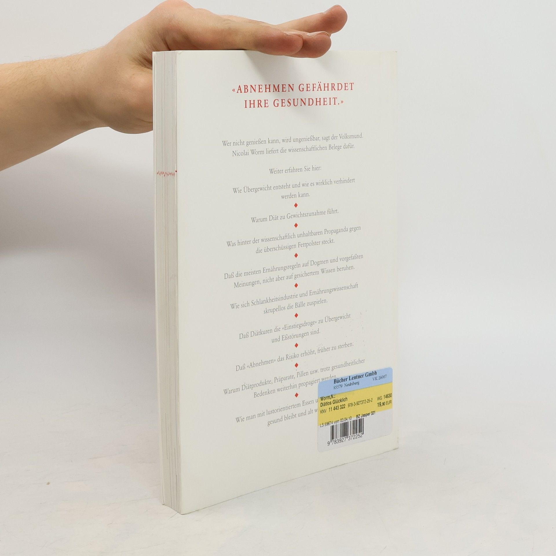 Diätlos glücklich. Während viele vom „einfachen Abnehmen“ sprechen, stellt Autor Nicolai Worm die Frage, ob Abnehmen aus gesundheitlicher Sicht tatsächlich erstrebenswert ist. Er warnt vor Diäten und anderen Abnehmtechniken und weist darauf hin, dass die weltweite Zunahme von Übergewicht eine natürliche Anpassungsreaktion des Körpers auf unseren bewegungsarmen Lebensstil ist. Das Buch diskutiert zahlreiche Fragen zur Verbindung zwischen Übergewicht und Gesundheit und enthüllt die problematische Verflechtung von Schlankheitsindustrie und Wissenschaft. Worm argumentiert, dass „Abnehmen“ für viele unrealistisch und möglicherweise ein Risikofaktor ist. Zudem zeigt er auf, dass viele Ernährungsregeln nicht auf gesichertem Wissen basieren. Informativ und unterhaltsam präsentiert das Buch die neuesten wissenschaftlichen Erkenntnisse und demonstriert, wie Genuss und Schlankheit harmonieren können. Es richtet sich sowohl an Gesundheitsexperten als auch an Laien, die sich mit Ernährung und Diäten beschäftigen. Ein Ratgeber gegen Ernährungsterror und Diätenwahn, mit einem Vorwort von Prof. Dr. med. Michael Berger (†) und empfohlen von EUROTOQUES (Europäische Union der Spitzenköche), neu aufgelegt im systemed Verlag.