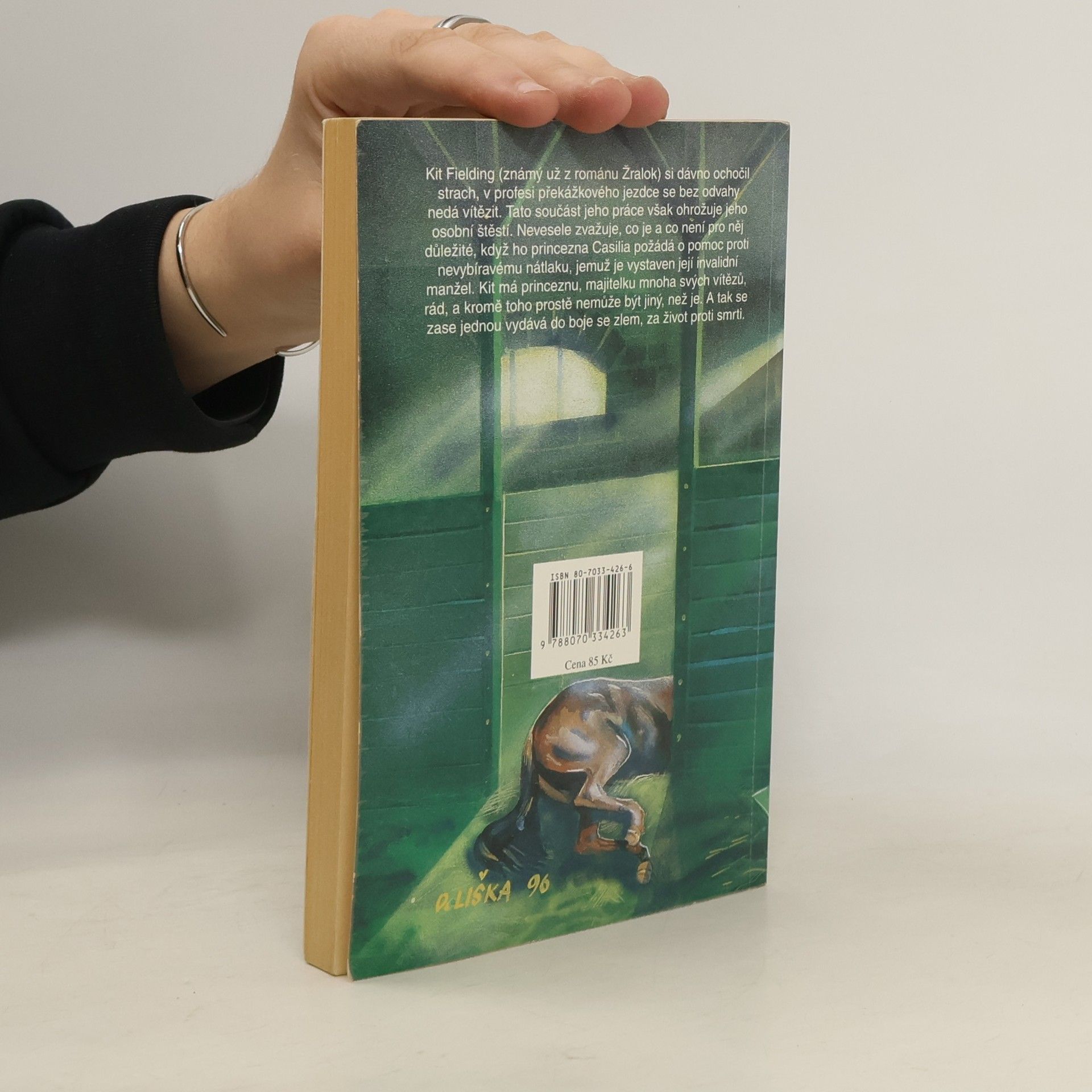 Kit Fielding (známý už z románu Žralok), si dávno ochočil strach, v profesi překážkového jezdce se bez odvahy nedá vítězit. Tato součást jeho práce však ohrožuje jeho osobní štěstí. Nevesele zvažuje, co je a co není pro něj důležité, když ho princezna Casilia požádá o pomoc proti nevybíravému nátlaku, jemuž je vystaven její invalidní manžel. Kit má princeznu, majitelku mnoha svých vítězů, rád, a kromě toho prostě nemůže být jiný, než je. A tak se zase jednou vydává do boje se zlem, za život proti smrti.