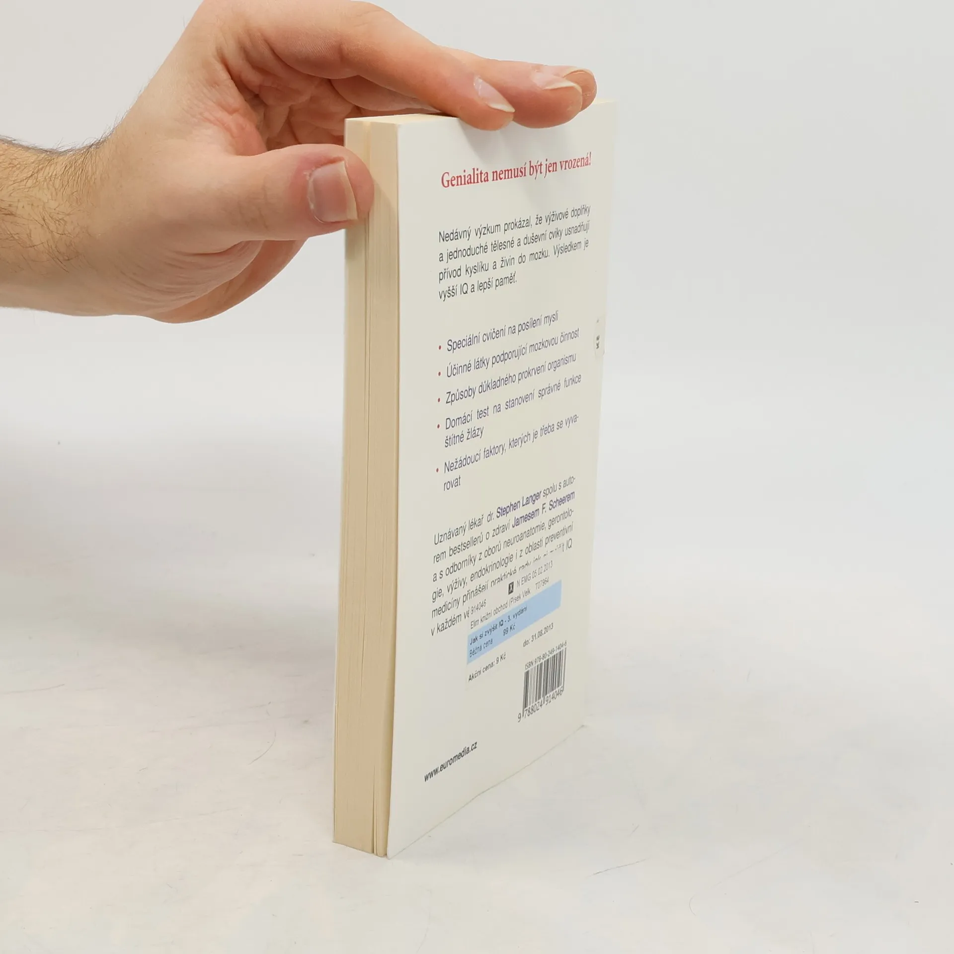 Pro všechny věkové kategorie. Nedávný výzkum prokázal, že výživové doplňky a jednoduché tělesné a duševní cviky usnadňují přívod kyslíku a živin do mozku. Výsledkem je vyšší IQ a lepší paměť. V knize najdete speciální cvičení na posílení mysli, tipy na účinné látky podporující mozkovou činnost, způsoby důkladného prokrvení organismu, domácí testy na stanovení správné funkce štítné žlázy i nežádoucí faktory, kterých je třeba se vyvarovat.