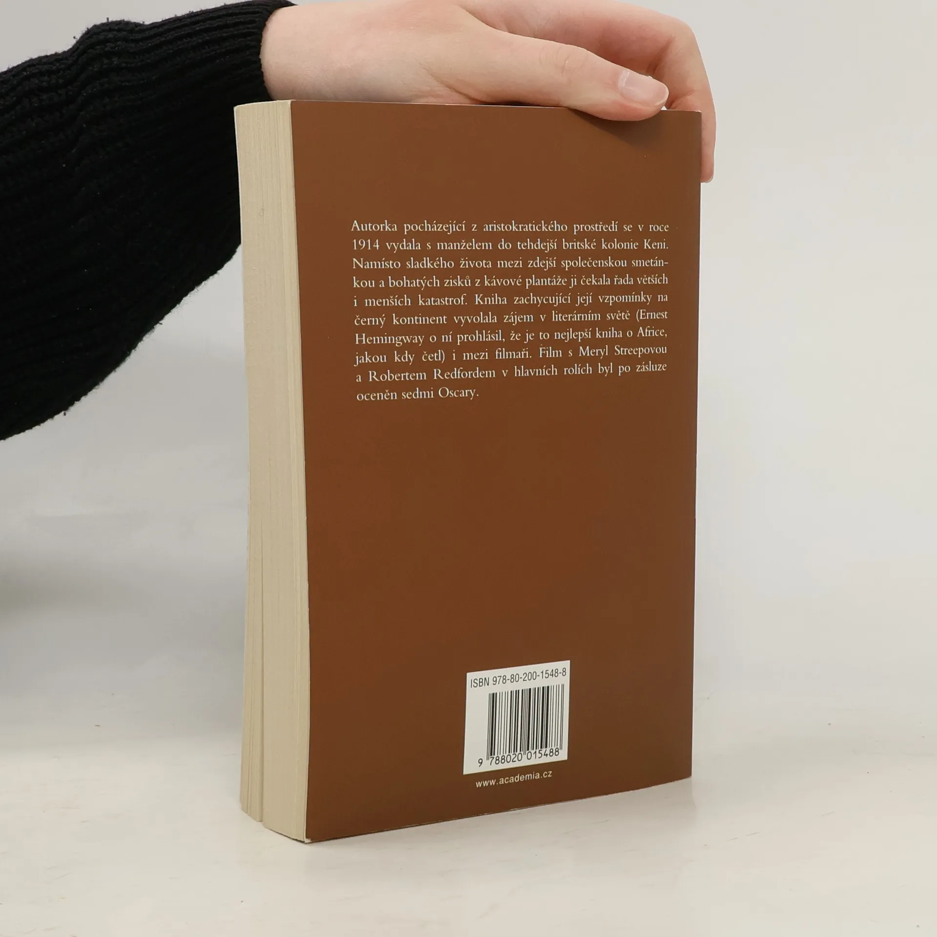 Autorka pocházející z aristokratického prostředí se v roce 1914 vydala s manželem do tehdejší britské kolonie Keni. Namísto sladkého života mezi zdejší společenskou smetánkou a bohatých zisků z kávové plantáže ji čekala řada větších i menších katastrof. Kniha zachycující její vzpomínky na černý kontinent vyvolala zájem v literárním světě (Ernest Hemingway o ní prohlásil, že je to nejlepší kniha o Africe jakou kdy četl) i mezi filmaři. Film s Meryl Streepovou a Robertem Redfordem v hlavních rolích byl po zásluze oceněn sedmi Oscary.