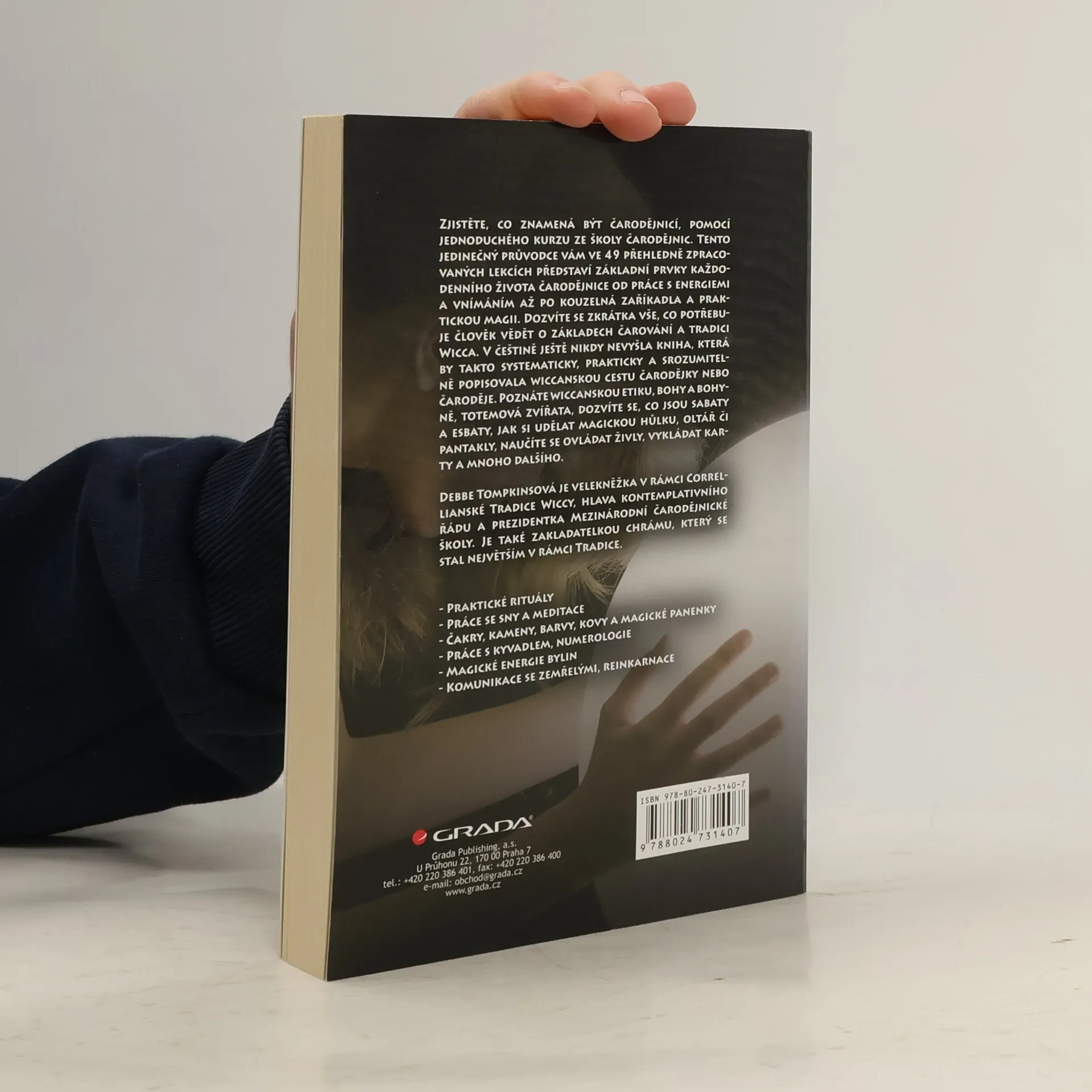 Podtitul: Magie podle wiccanské tradice Tento jedinečný průvodce vám ve 49 přehledně zpracovaných lekcích představí základní prvky každodenního života čarodějnice od práce s energiemi a vnímáním až po kouzelná zaříkadla a praktickou magii. Dozvíte se zkrátka vše, co potřebuje člověk vědět o základech čarování a tradici Wicca. V češtině ještě nikdy nevyšla kniha, která by takto systematicky, prakticky a srozumitelně popisovala wiccanskou cestu čarodějky nebo čaroděje. Poznáte wiccanskou etiku, bohy a bohyně, totemová zvířata, dozvíte se, co jsou sabaty a esbaty, jak si udělat magickou hůlku, oltář či pantakly, naučíte se ovládat živly, vykládat karty a mnoho dalšího.
