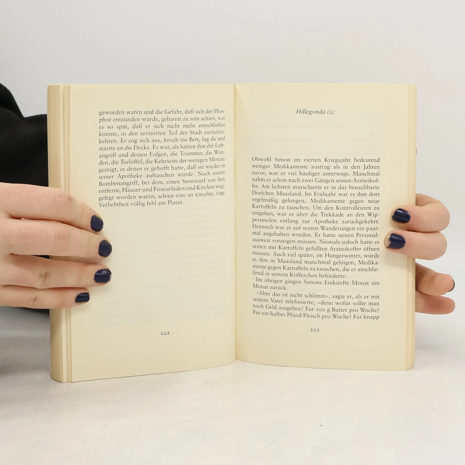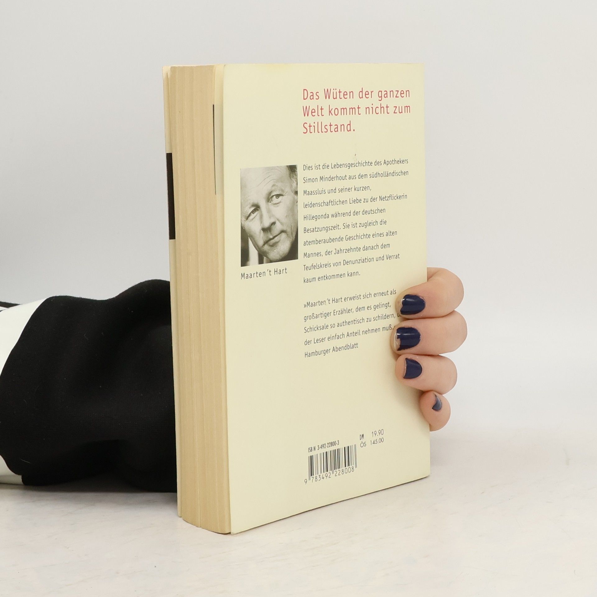 Diesmal ist es der Apotheker Roemer Simon Minderhout, der im Mittelpunkt des Geschehens steht und dessen kurze, heftige, um so unvergesslichere Liebe zu der Netzflickerin Hillegonda während der deutschen Besatzungszeit in den Niederlanden. Eine Liebe, die ihn 50 Jahre später auf eine beklemmende Weise einholt …