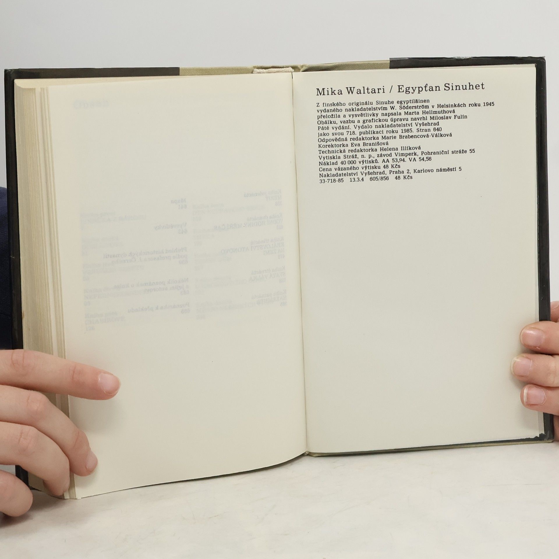Waltariho nejslavnější román nám dává nahlédnout do složité a bouřlivé doby panování osmnácté dynastie egyptských faraónů, kdy došlo k neobvyklému pokusu o sociální a politickou reformu společnosti, jenž se v náboženské oblasti projevil jako zápas dvou bohů: boha starého pořádku Amona a boha lásky a míru Atona. 33-718-85