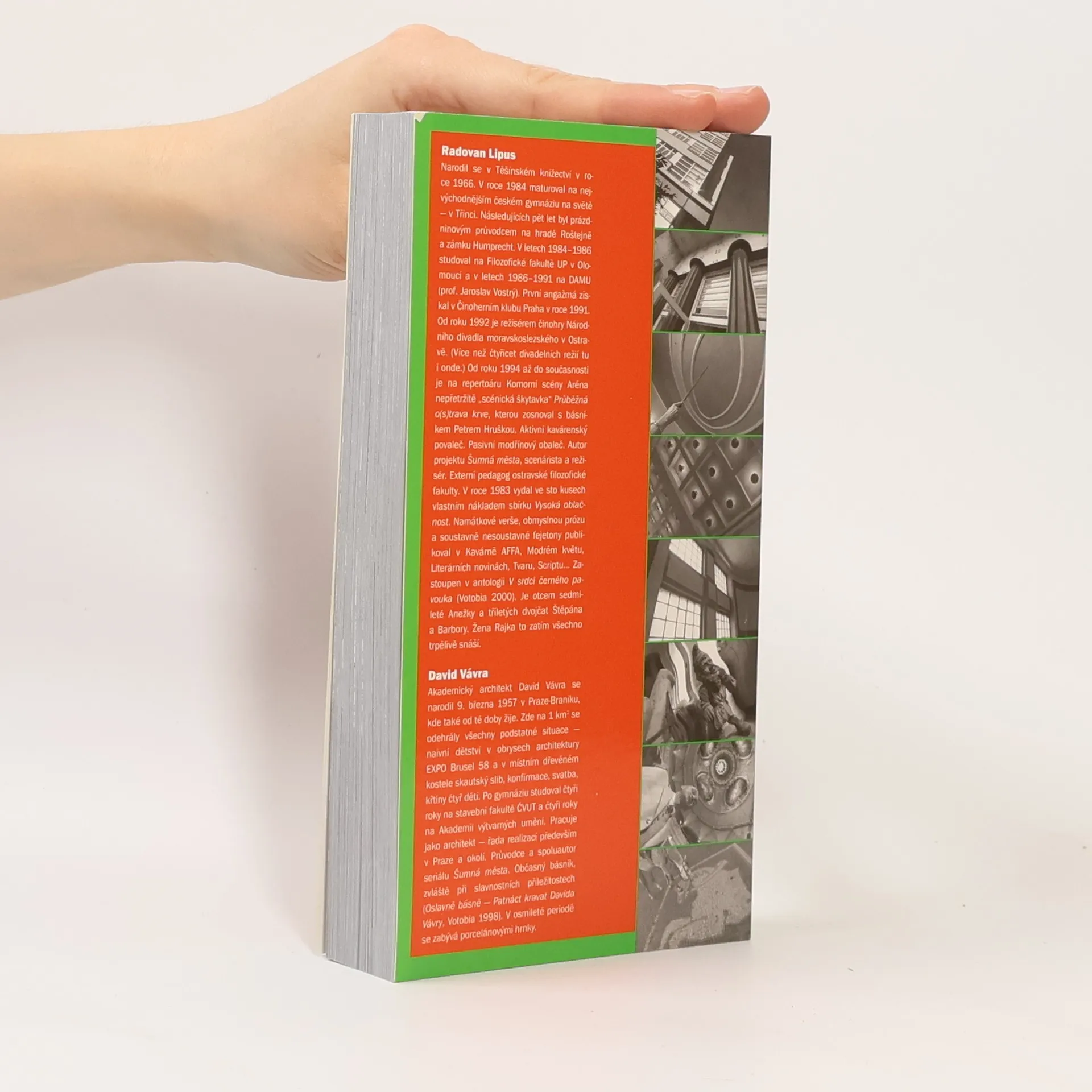 Hlavním tématem mimořádně úspěšného dokumentárního seriálu dvojice Lipus – Vávra je oblast v naší televizní kultuře spíše opomíjená — moderní architektura. Autorům se podařilo najít natolik strhující a svižný pohled a způsob interpretace, že k televizním obrazovkám přitáhli i diváky, kteří podobné pořady nesledují. Knižní podoba nebude pouze převodem scénářů, ale využívá všech možností tištěného média. Proto v knize najdete také mapky vybraných českých, moravských a slezských měst, dobové i aktuální fotografie, zasvěcené komentáře místních historiků umění a medailony jednotlivých architektů. Publikace chce být podrobným a přitom zábavným průvodcem českou moderní architekturou. Města v knize zastoupená: Ostrava, Opava, Olomouc, Krnov, Nový Jičín, Prostějov, Hradec Králové, Orlice, Náchod, Zlín, Pardubice, Kolín, Jablonec nad Nisou, Liberec a Nymburk. Prohlédněte si www.sumnamesta.cz