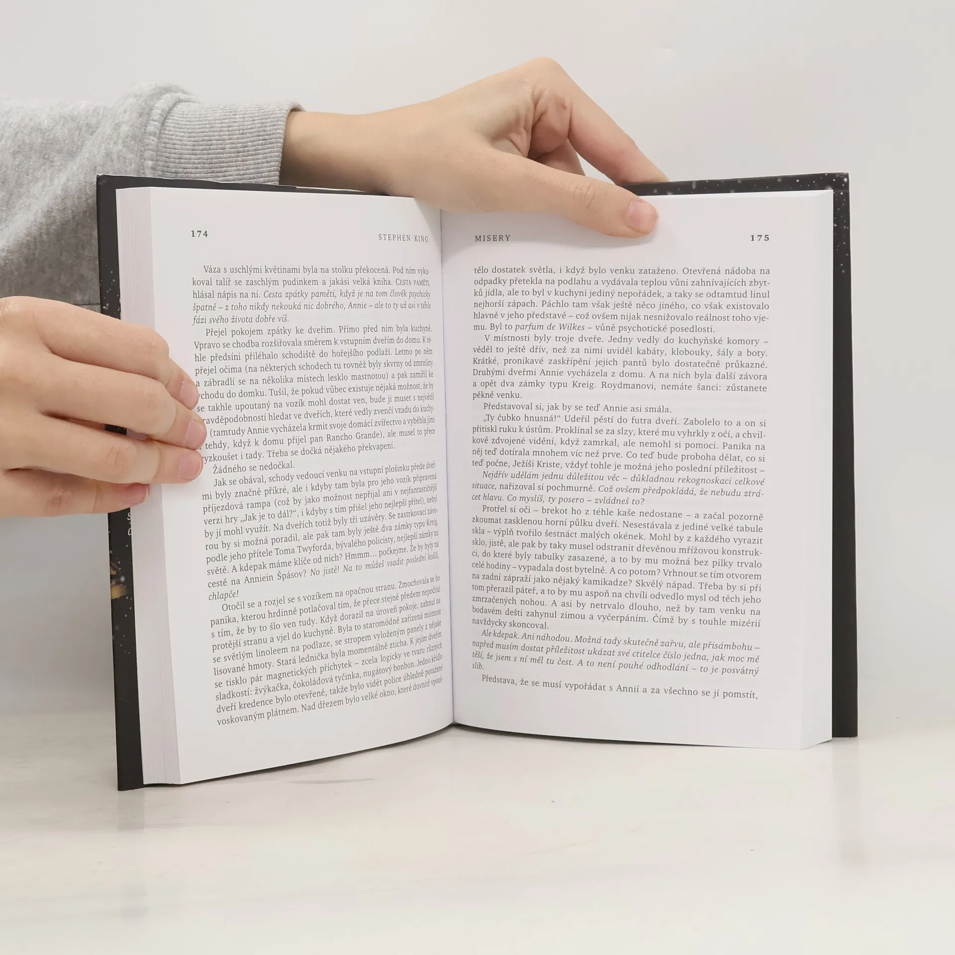 Román Misery patří mezi nejznámější a nejzdařilejší thrillery vzešlé z dílny Stephena Kinga. Hlavní hrdina Paul Sheldon je autorem romantických příběhů o krásné Misery. Osudovou náhodou najde Paula po těžké havárii jeho nejoddanější čtenářka, bývalá ošetřovatelka Annie Wilkesová. Ta z něj ve svém odlehlém domě učiní nedobrovolného pacienta. Během svérázného „léčení" ho přiměje, aby psal pokračovaní Miseryiných příběhů podle jejích představ. Díky jejím šíleným donucovacím metodám prožívá Paul tvůrčí období, jaké si neuměl představit ani v těch nejděsivějších představách.