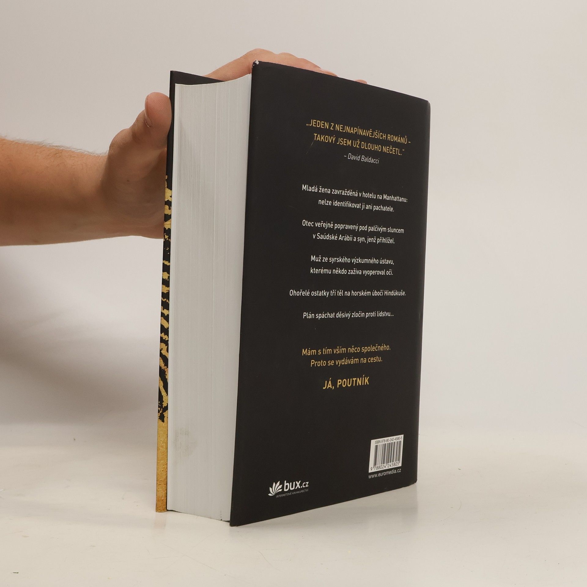 Mladá žena zavražděná v hotelu na Manhattanu – nelze identifikovat ji ani pachatele. Otec veřejně sťatý pod palčivým sluncem v Saúdské Arábii a syn, jenž přihlížel. Muž ze syrského výzkumného ústavu, kterému někdo zaživa vyoperoval oči. Ohořelé ostatky tří těl na horském úbočí Hindúkuše. Plán spáchat děsivý zločin proti lidstvu… Mám s tím vším něco společného. Proto se vydávám na cestu. Já, Poutník. „Jediný thriller, který si letos musíte přečíst.“ – The Guardian