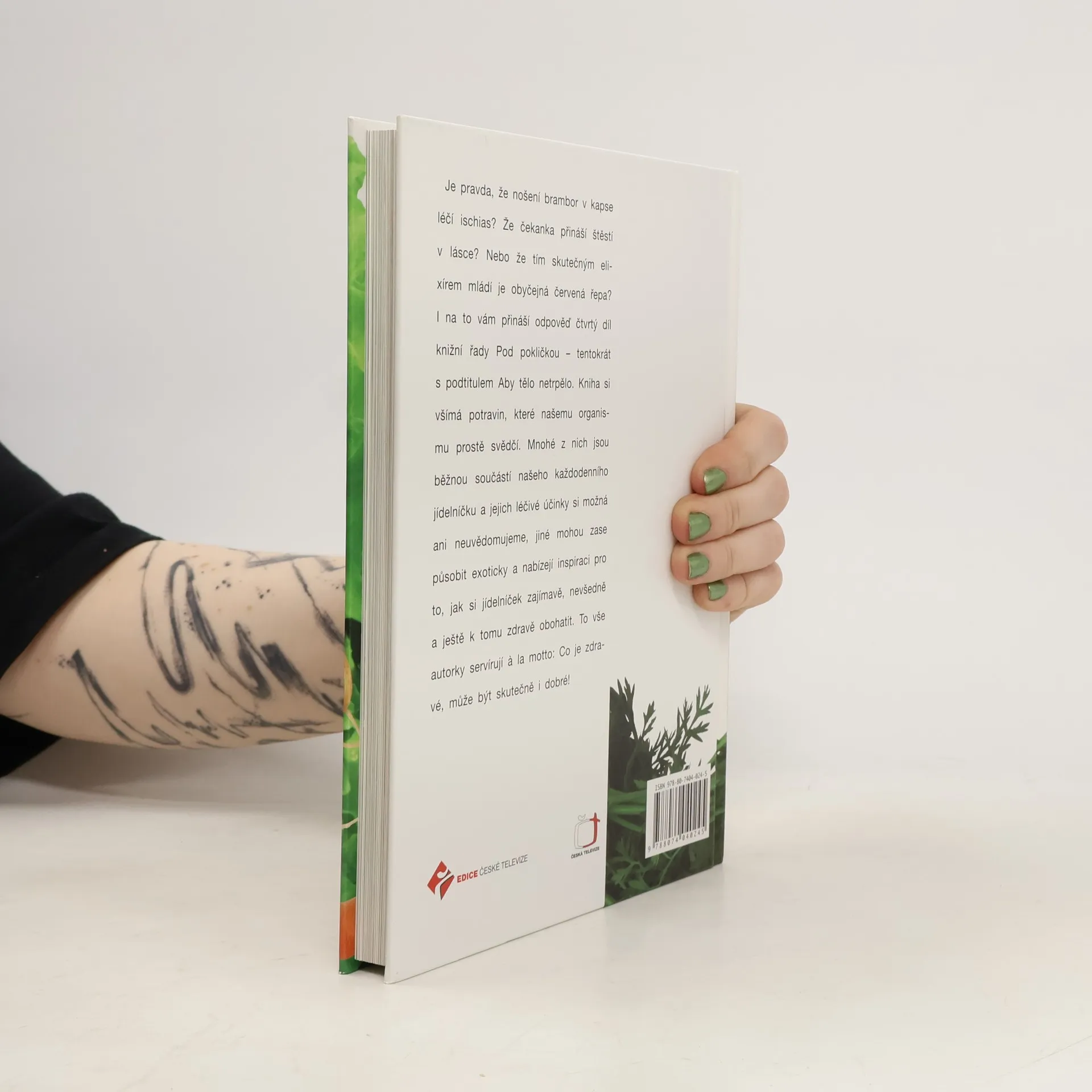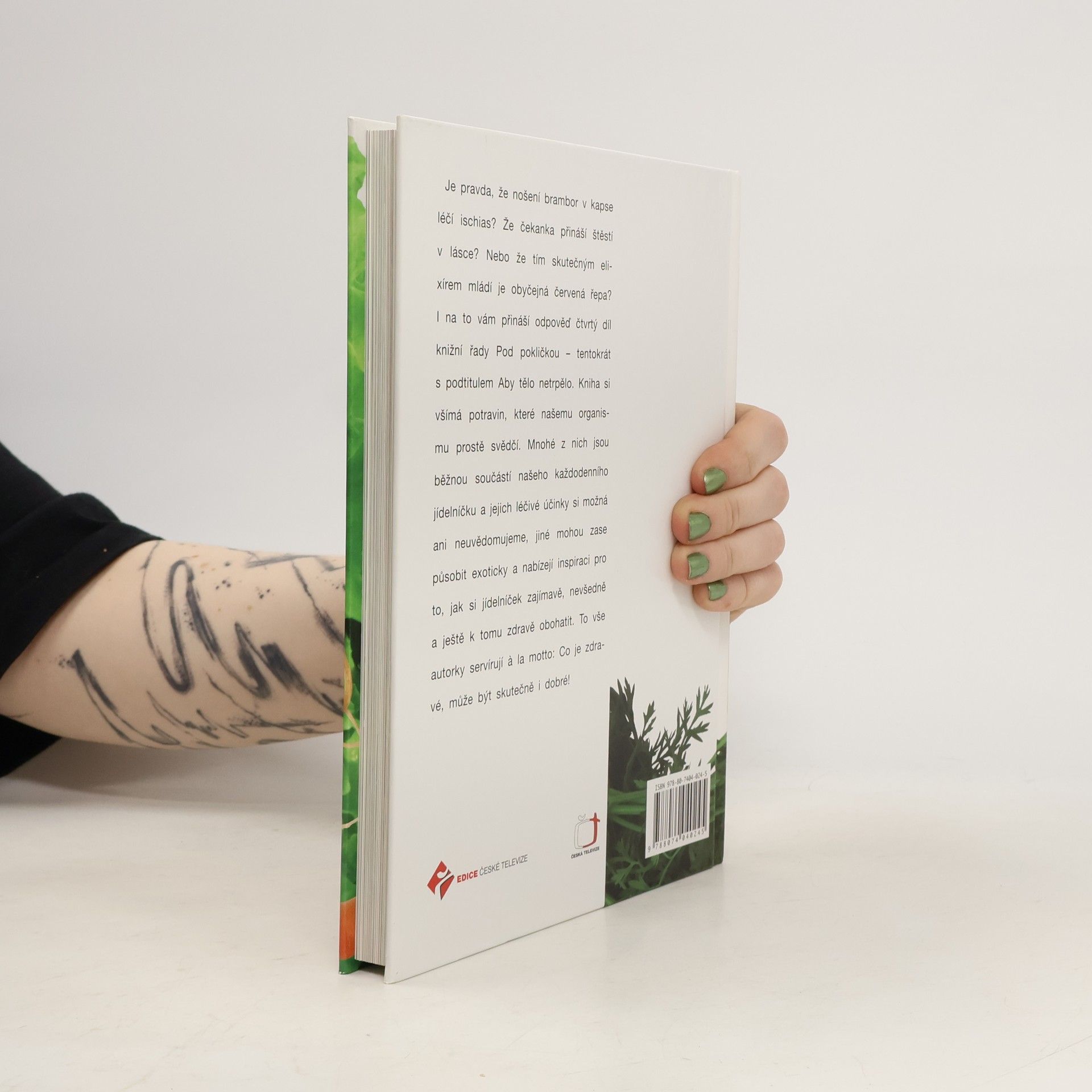 Aby tělo netrpělo. Je pravda, že nošení brambor v kapse léčí ischias? Že čekanka přináší štěstí v lásce? Nebo že tím skutečným elixírem mládí je obyčejná červená řepa? I na to vám přináší odpověď čtvrtý díl knižní řady Pod pokličkou - tentokrát s podtitulem Aby tělo netrpělo. Kniha si všímá potravin, které našemu organismu prostě svědčí. Mnohé z nich jsou běžnou součástí našeho každodenního jídelníčku a jejich léčivé účinky si možná ani neuvědomujeme, jiné mohou zase působit exoticky a nabízejí inspiraci pro to, jak si jídelníček zajímavě, nevšedně a ještě k tomu zdravě obohatit. To vše autorky servírují a la motto: Co je zdravé, může být skutečně i dobré!