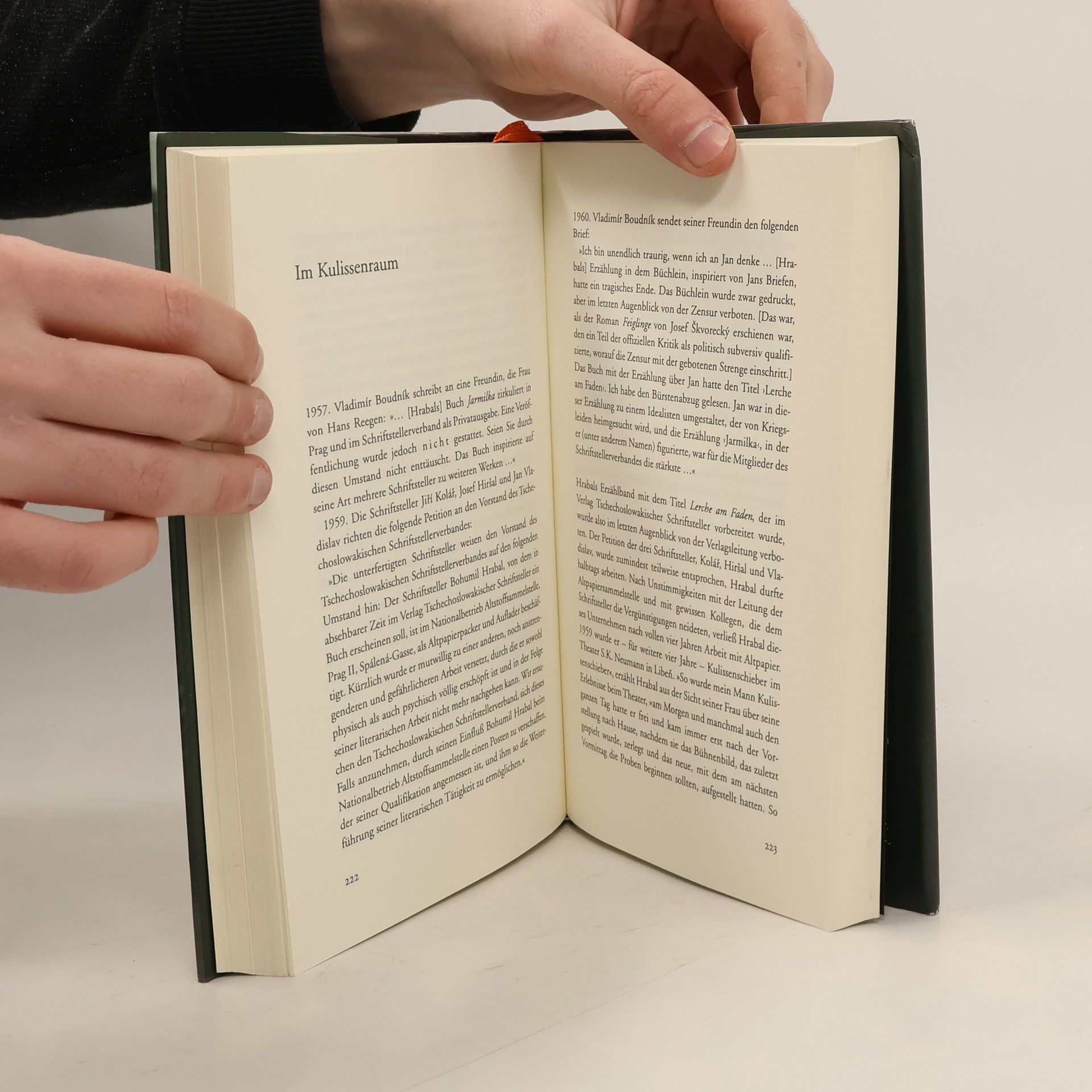 Das vorliegende Buch stellt eine nahezu in einen Roman übergehende Biographie über Bohumil Hrabal dar, die vom Schriftsteller noch vor seinem Tode durchgelesen und autorisiert wurde. Vier Jahre lang hat sich Monika Zgustová mit Hrabal getoffen und seinen Erzählungen gelauscht; sie begleitet uns durch Hrabals Kindheit in den letzten Tagen der österreichisch-ungarischen Monarchie und des Ersten Weltkrieges, durch seine Jugend voller Nöte, die Zwischenkriegszeit im böhmischen Städtchen Namburk, den Zweiten Weltkrieg auf dem Bahnhof in Kostomlaty, die ersten Jahre nach dem kommunistischen Putsch 1948 in den Stahlwerken in Kladno und in der Altstoffsammelstelle in Prag. Zugleich vermittelt die Autorin einen Einblick in die ersten literarischen Versuche Hrabals und in sein Inneres, als in den sechziger Jahren sein Bekanntheits- und Beliebtheitsgrad den Höhepunkt erreicht hatte, aber auch als er ab Anfang der Siebziger an Depressionen, Gewissensbissen und Gefühlen von Leere litt. Aus den Erinnerungen Hrabals, seiner Freunde und auch seiner Gegner und vor allem ihren eigenen Erzählungen stellt die Autorin ein ergreifendes Porträt des Schriftstellers zusammen, der Moralpredigten aller Art strikt ablehnte und dessen Werk zu einer einzigartigen Botschaft geworden ist. Eine Biographie, die auch literarisch dem Anspruch ihres Gegenübers gerecht wird.