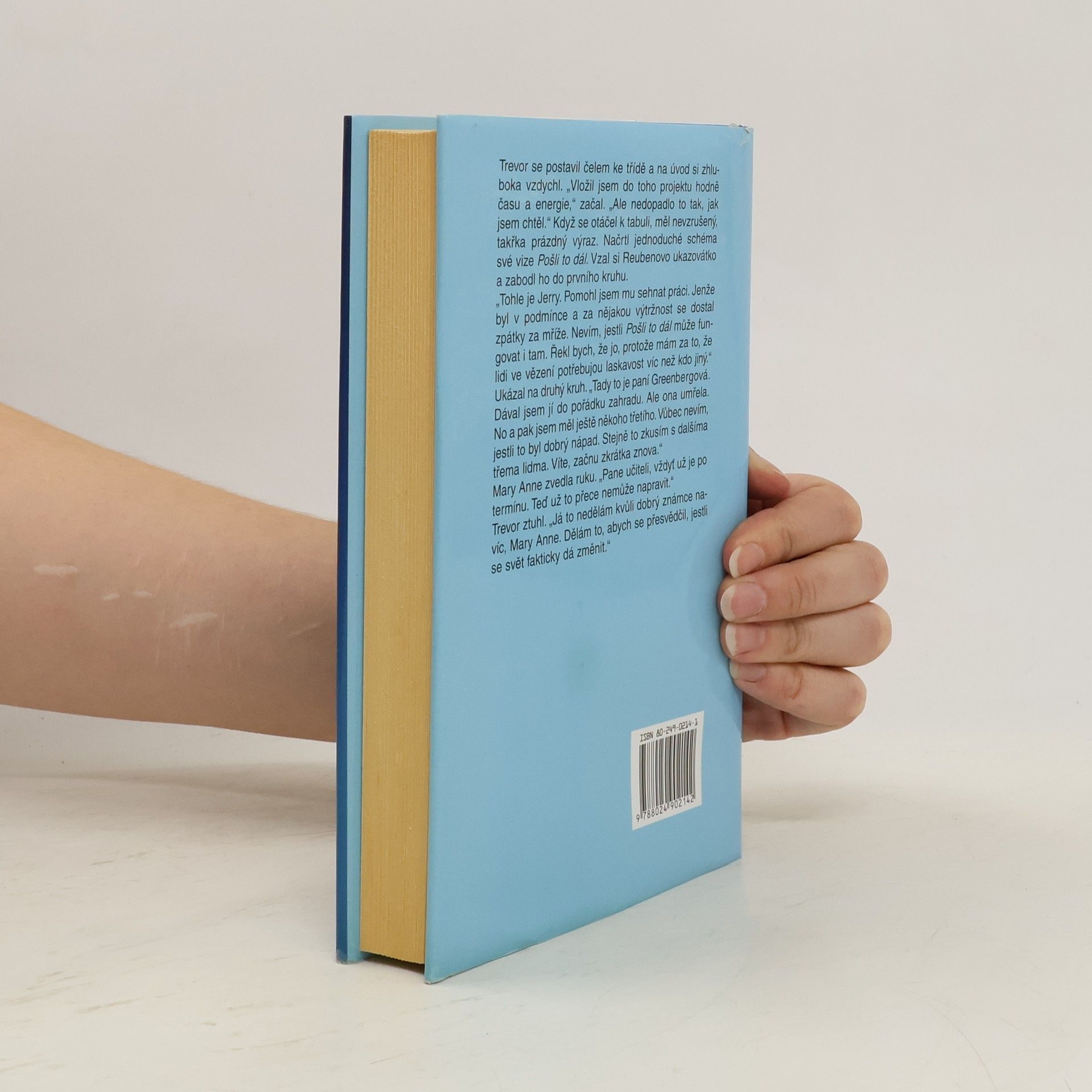 Vymyslete způsob jak změnit svět a potom ho uskutečněte, napíše první den školy na tabuli Reuben St. Claire. Když se dvanáctiletý Trevor McKinney zamýšlí nad úkolem, který zadal nový učitel, napadne ho, jak lze "poslat dál" dobrý skutek. Stačí, aby člověk nezištně prospěl třem lidem, každý z nich udělal něco pro další tři... a tento jednoduchý mechanismus zanedlouho ovládne celé lidstvo. Trevor nezůstane u teorie, rozhodne se svůj plán realizovat. V kalifornském městečku, kde bydlí, si vybere trojici jedinců, kteří podle jeho názoru potřebují pomoc. Jedním z nich je právě St. Claire, zohyzděný veterán z Vietnamu. Chlapec by rád dal učitele dohromady se svou matkou Arlenou, která na muže dosud neměla štěstí. Brzy se ale ukáže, že dobrá vůle jednoho malého kluka nestačí. Trevor se však nedá odradit neúspěchem. Lidé přece nejsou zlí a lhostejní, jen se jim musí trochu věřit...... celý text