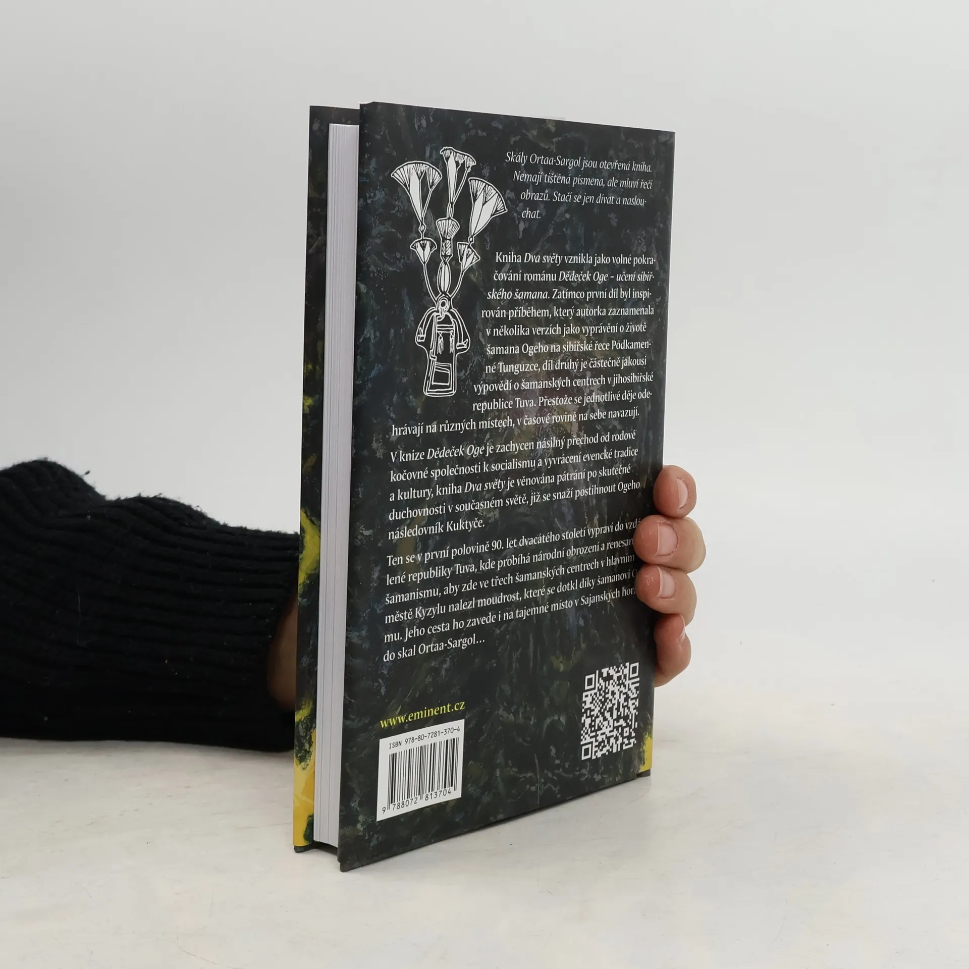 Kniha Dva světy vznikla jako volné pokračování románu Dědeček Oge – učení sibiřského šamana. Zatímco první díl byl inspirován příběhem, který autorka zaznamenala v několika verzích jako vyprávění o životě šamana Ogeho na sibiřské řece Podkamenné Tunguzce, díl druhý je částečně jakousi výpovědí o šamanských centrech v jihosibiřské republice Tuva. Přestože se jednotlivé děje odehrávají na různých místech, v časové rovině na sebe navazují. V knize Dědeček Oge je zachycen násilný přechod od rodové kočovné společnosti k socialismu a vyvrácení evencké tradice a kultury, kniha Dva světy je věnována pátrání po skutečné duchovnosti v současném světě, již se snaží postihnout Ogeho následovník Kuktyče. Ten se v první polovině 90. Let vypraví do vzdálené republiky Tuva, kde probíhá národní obrození a renesance šamanismu, aby zde ve třech šamanských centrech v hlavním městě Kyzylu nalezl moudrost, které se dotkl díky šamanovi Ogemu. Jeho cesta ho zavede i na tajemné místo v Sajanských horách, do skal Ortaa-Sargol…