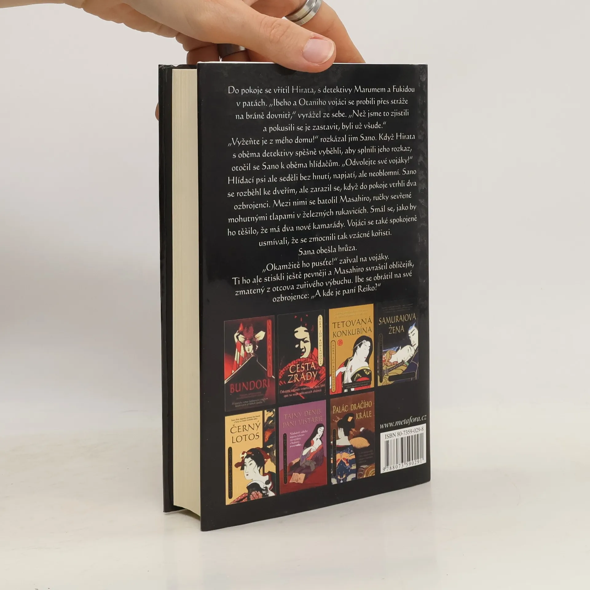 Na podzim roku 1694 panuje v hlavním městě Edu velmi napjatá atmosféra. Mír v zemi, trvající téměř celé století, je ohrožen. O převzetí moci usilují dva nesmiřitelní nepřátelé, komoří Janagisawa a Macudaira, bratranec nejistého a slabého šóguna. Oba vyzbrojují své armády a časté potyčky jejich bojovníků v ulicích hrozí přerůst v občanskou válku. Neklidnou situaci ještě více zdramatizuje úmrtí Makina, předsedy rady starších a důvěrného přítele komořího. Vlivný muž v obavách o svůj život přikázal svému komorníkovi, aby v případě jeho smrti předal vyšetřovateli dopis, v němž ho žádá o objasnění možné vraždy a usvědčení pachatele. Čestný a zásadový Sano Ičiró, který se za žádných okolností nechce zpronevěřit kodexu samurajské cti, se se souhlasem šóguna a s pomocí odvážné ženy Reiko a věrného hlavního dvořana pouští do nebezpečného pátrání, při němž musí čelit nátlaku představitelů obou znepřátelených klanů, usilujících získat ho za každou cenu na svou stranu. Devátý díl cyklu historických detektivních příběhů z Japonska 90. let 17. století.