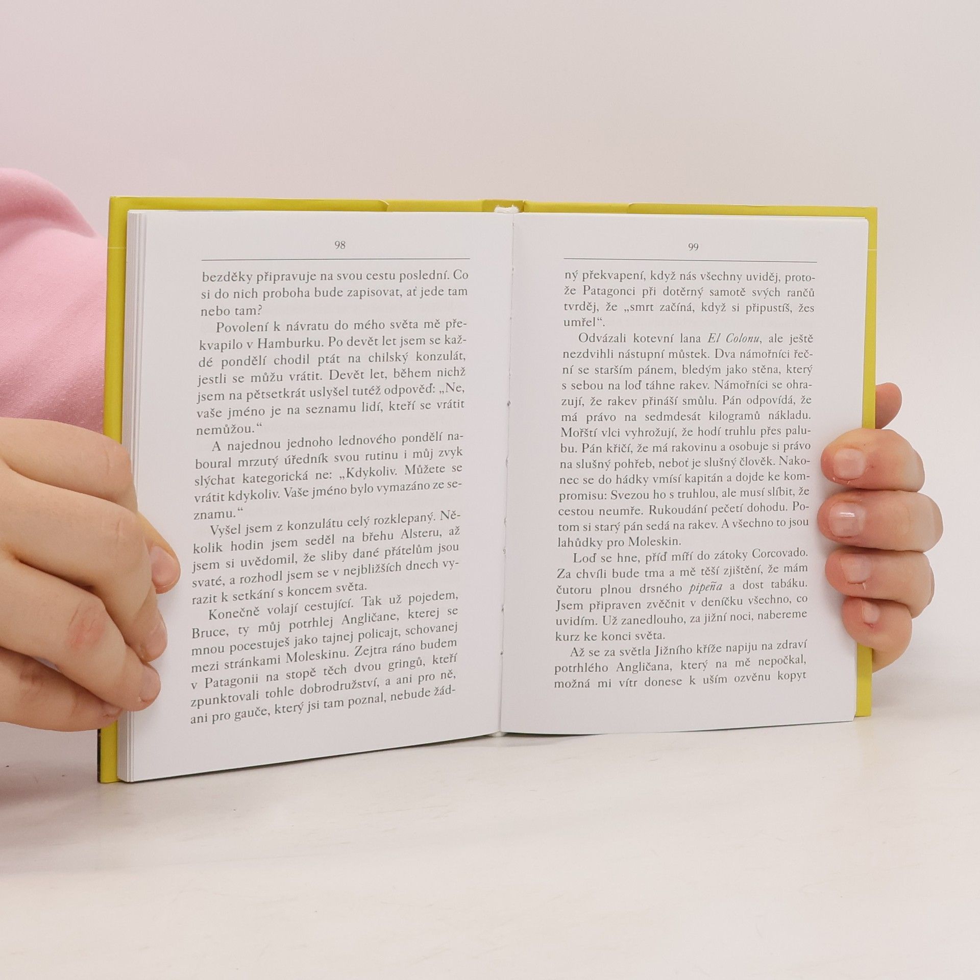 Patagonský expres nás odváží do míst, kde žijí občas bizarní, ale čistí lidé, pro něž je dobrodružství přirozenou součástí života. Mezi nimi se seznamujeme se starým mořeplavcem, který v chilských fjordech věčně hledá chimérickou loď, gauči, kteří pořádají mistrovství Patagonie v tlučení hubou, anglickým cestovatelem, jehož knížky znají i čeští čtenáři, slovinským exulantem, který objevil ozónovou díru, i spisovatelem samotným, který miluje konec světa. Patagonský expres je reportáž z cesty nikam a přece po celém světě, cesty v několika epizodách a přece na celý život, cesty za splněním jednoho velikého slibu…
