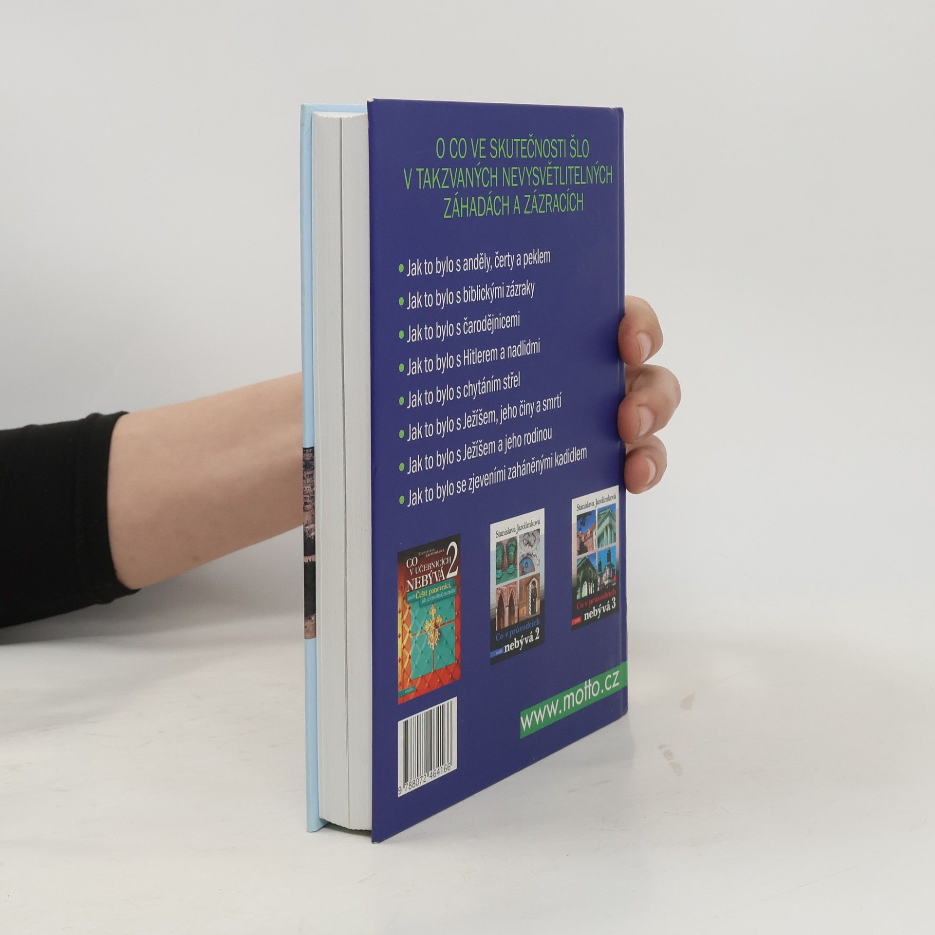Víte, jakou roli sehrálo v čarodějnických procesech obilí? Odkud by musela andělům vyrůstat křídla, aby mohli létat? Nebo proč Ježíš nesl na popraviště pouze část kříže? V knize Stanislavy Jarolímkové se dozvíte nejen vysvětlení těchto věčných otazníků, ale také se autorka pokusí přijít na kloub dalším zázrakům a záhadným událostem, které lidstvo provázely od starověku až po současnost.
