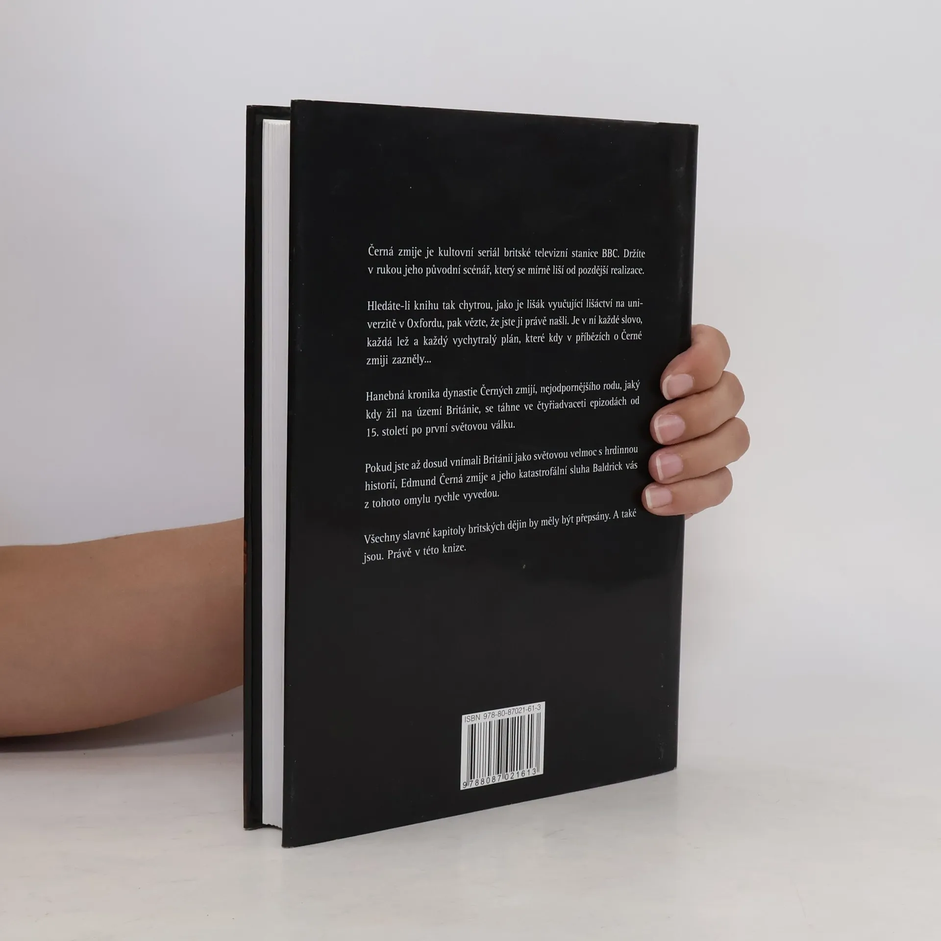 Co je Černá zmije? Kultovní seriál produkovaný britskou televizí BBC. Sleduje ságu dynastie Černé zmije (angl. Black Adder) v rozmezí mnoha staletí. Hlavní postavu každé série a i ostatních zvlášť natočených příběhů hraje Rowan Atkinson – známý u nás také jako Mr. Bean nebo inspektor Fowler ze seriálu Tenká modrá linie. Jestli hledáte knihu tak chytrou, jako je lišák vyučující lišáctví na univerzitě v Oxfordu, pak je tahle knížka právě pro vás. Je v ní každé slovo, každá lež a každý vychytralý plán, které kdy v příbězích o Černé zmiji zazněly...