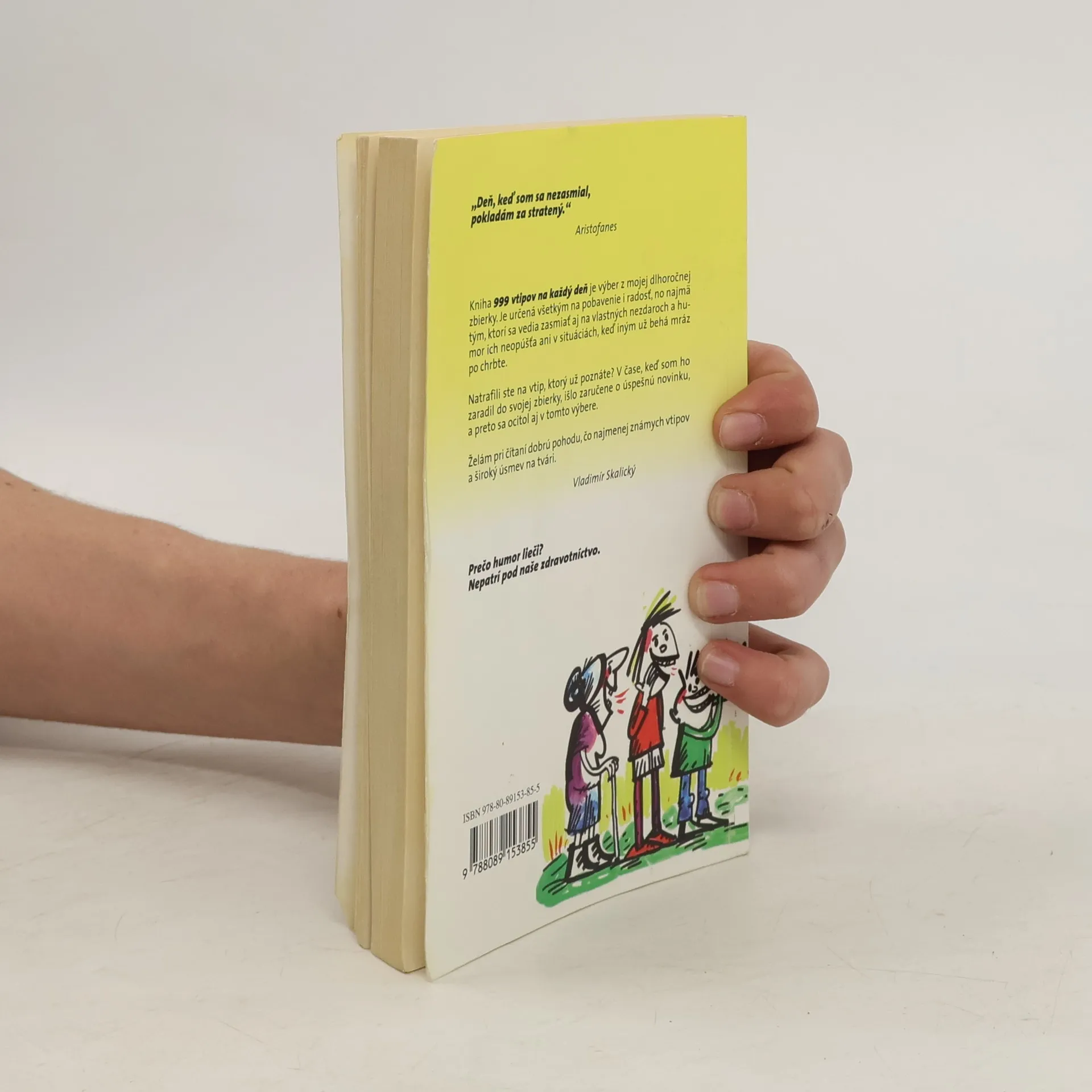 Kniha 999 vtipov na každý deň je výber z dlhoročnej autorovej zbierky. Je určená všetkým na pobavenie i radosť, no najmä tým, ktorí sa vedia zasmiať aj na vlastných nezdaroch a humor ich neopúšťa ani v situáciách, keď iným už behá mráz po chrbte.