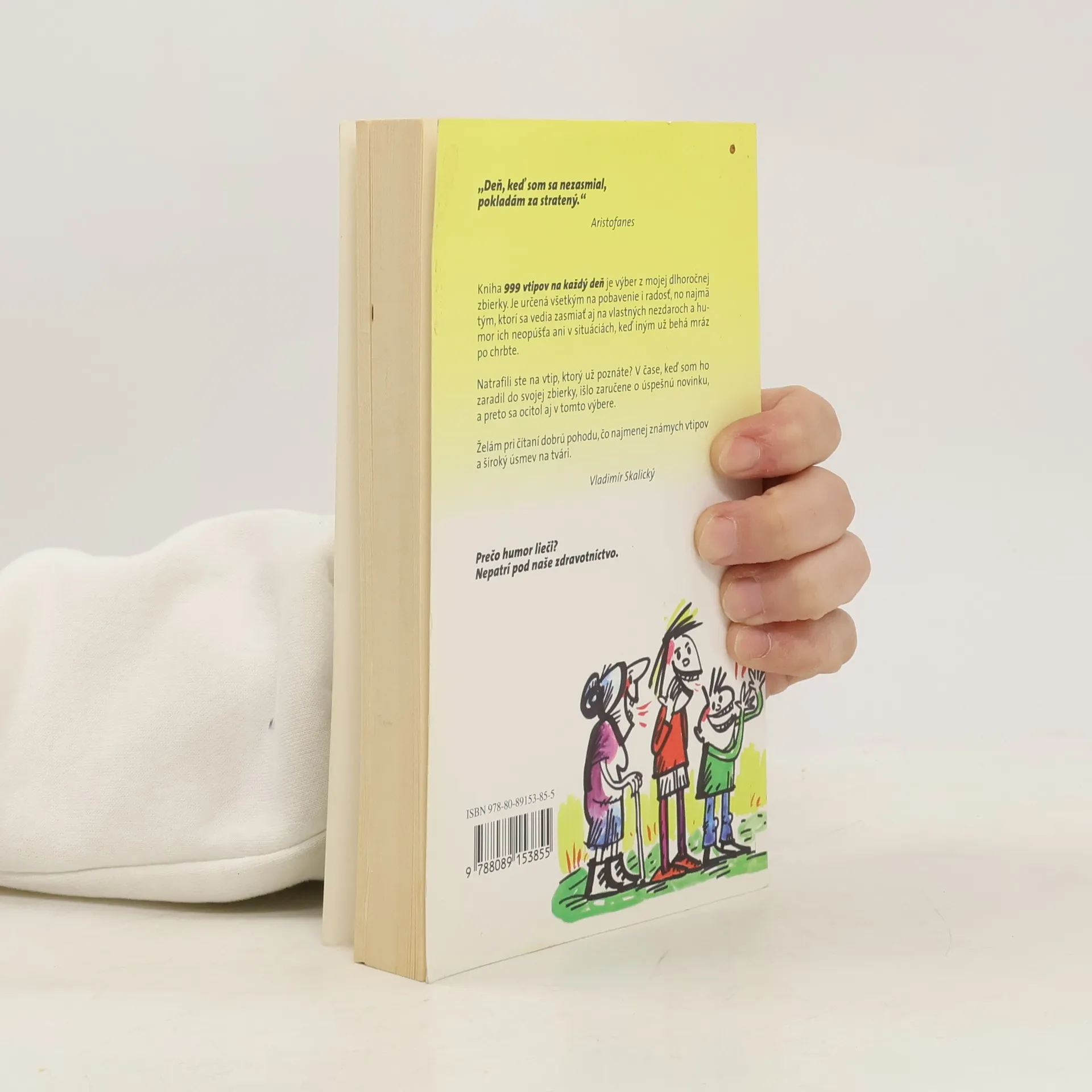 Kniha 999 vtipov na každý deň je výber z dlhoročnej autorovej zbierky. Je určená všetkým na pobavenie i radosť, no najmä tým, ktorí sa vedia zasmiať aj na vlastných nezdaroch a humor ich neopúšťa ani v situáciách, keď iným už behá mráz po chrbte.