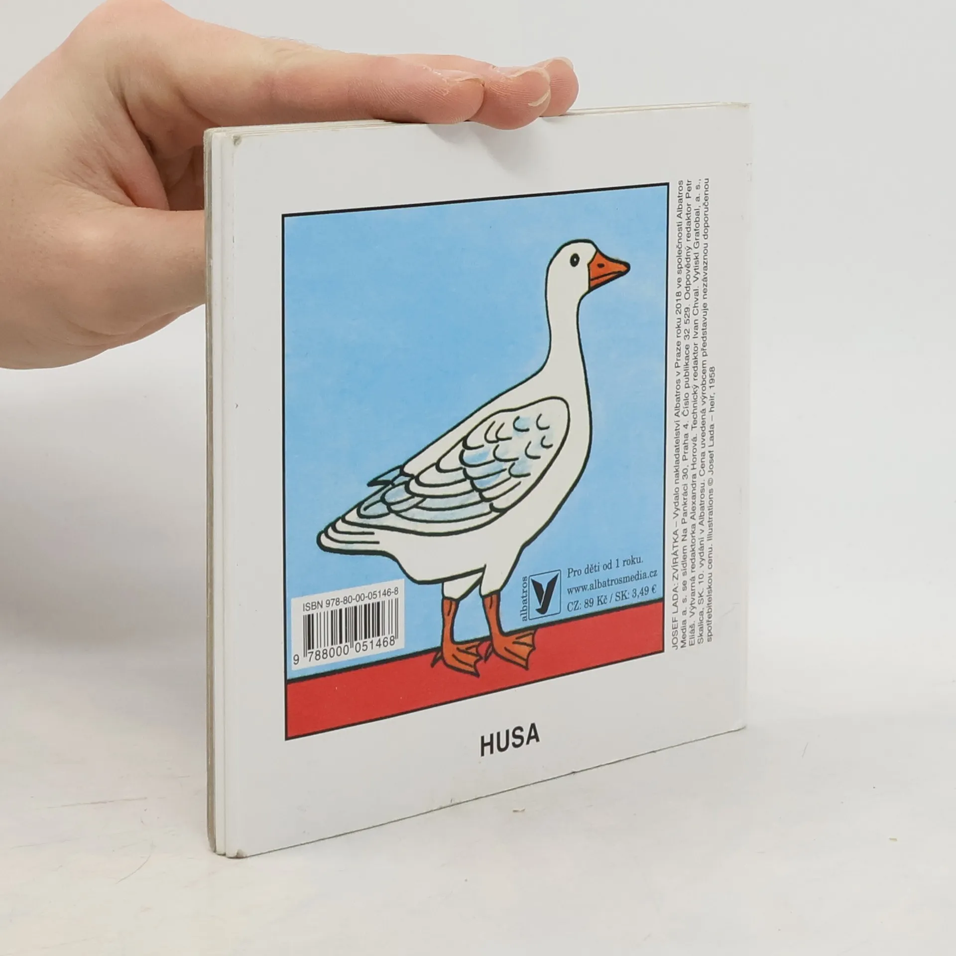 Malé rozkládací leporelo pro nejmenší: 12 stránek – 12 jednoduchých obrázků zvířat v barevných ilustracích Josefa Lady, s kterými se děti mohou setkat převážně na venkově (kůň, kráva, slepice, husa...), ale také domácí mazlíčci (kočka a pes).
